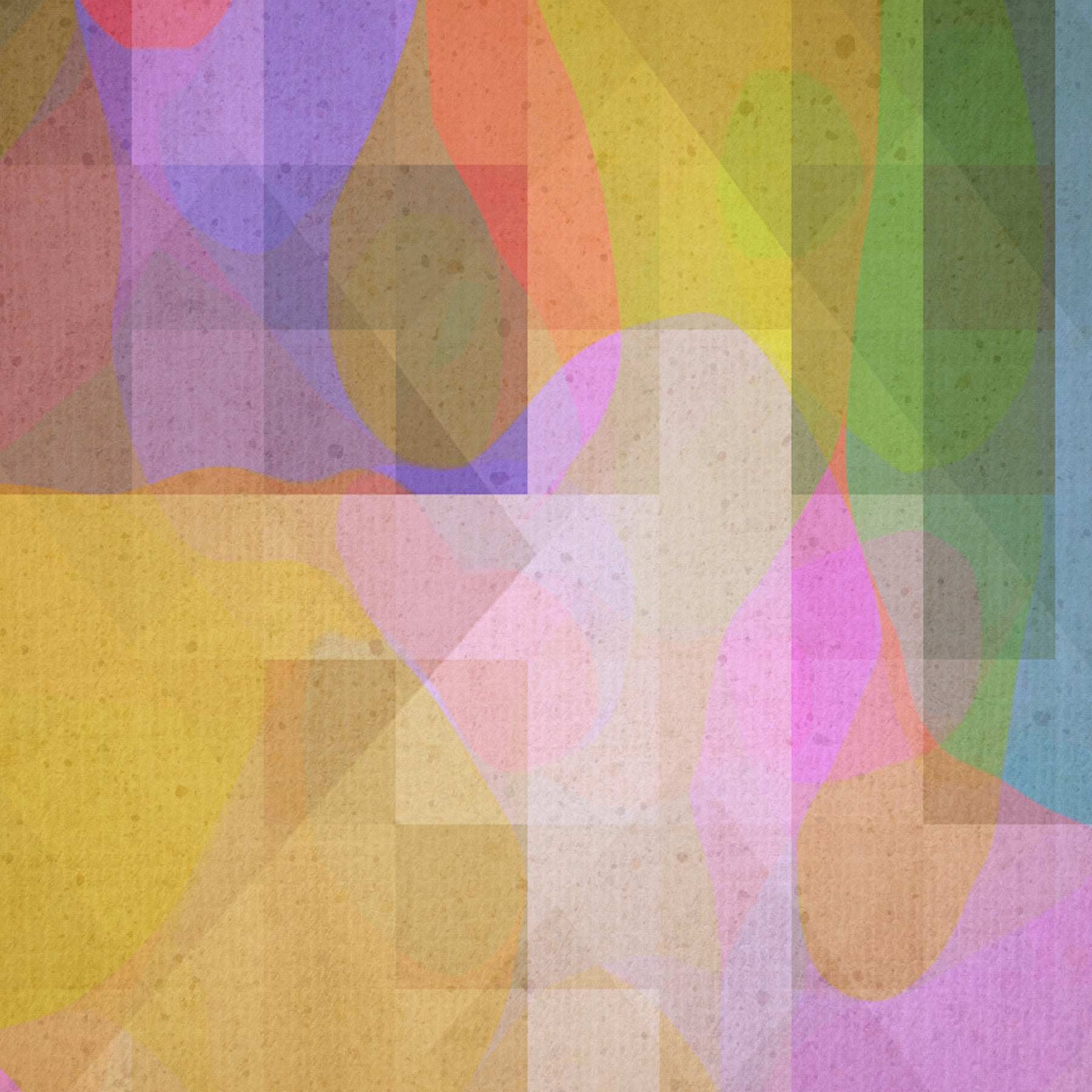 Layered shapes in pink, yellow, green, and purple forming a soothing abstract geometry wallpaper.