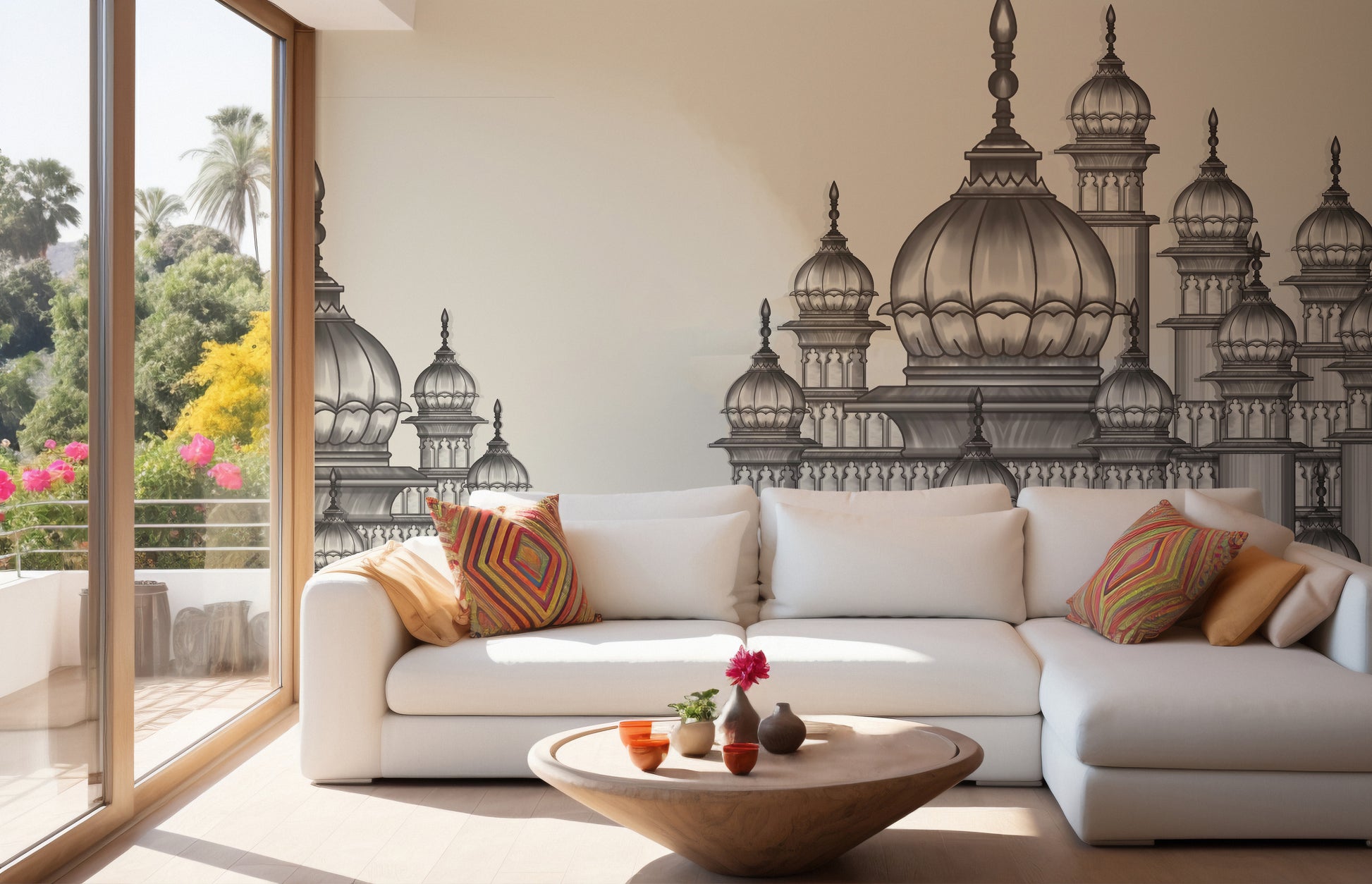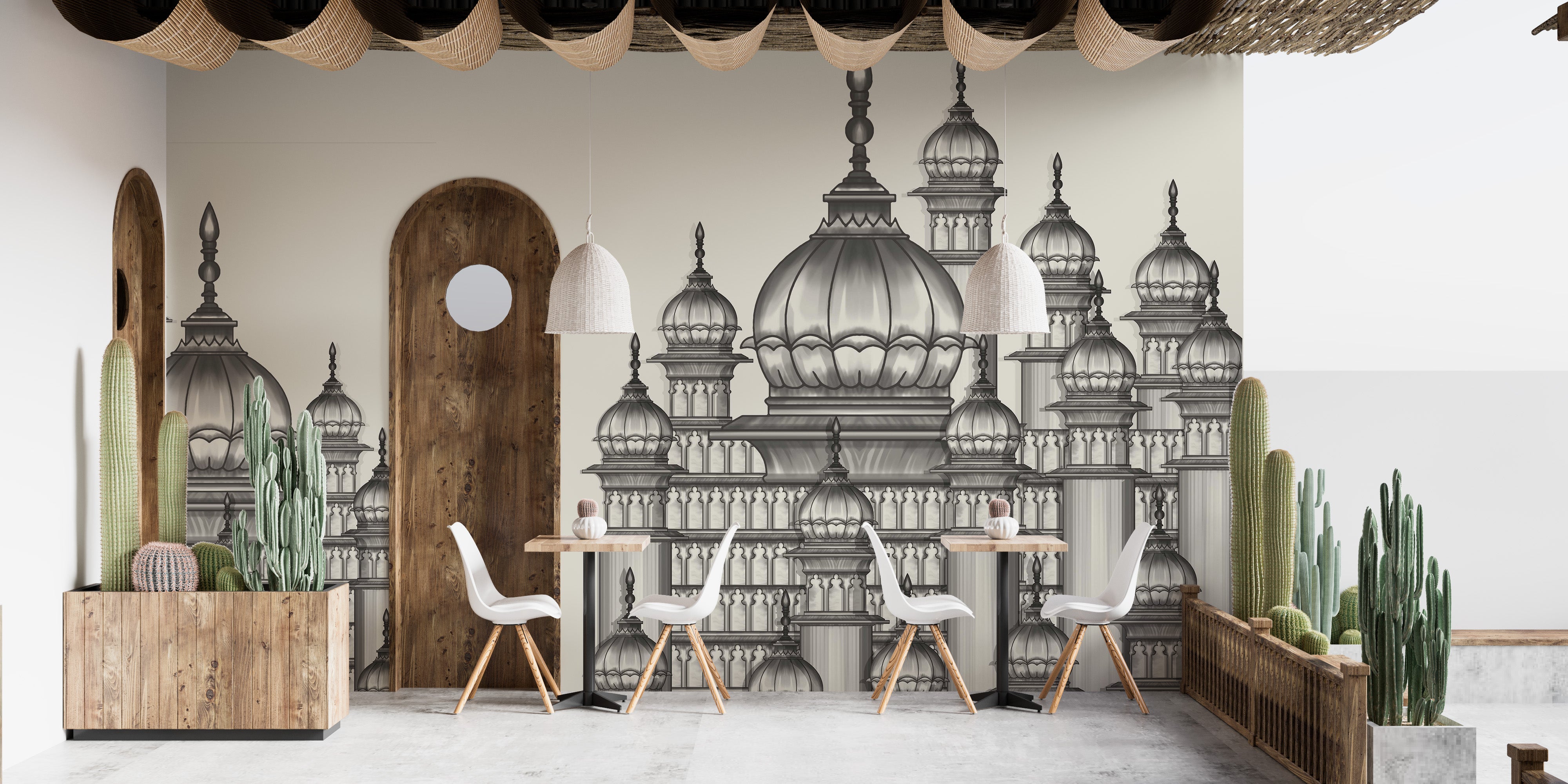 Transform your space into a regal sanctuary with our Mughal Palace wallpaper murals. Delicately crafted by Indian artisans, this vintage-style wallpaper boasts opulent patterns and a palette of rich hues that evoke the grandeur of Mughal architecture. Ideal for those seeking to infuse their home with luxury and an air of the exotic, this mural stands as a bold statement piece. The majestic designs are not just wall coverings but a plunge into historical splendor, offering an immersive experience that's truly unique. Elevate your decor to royal heights with this stunning representation of artistry and cultural heritage.