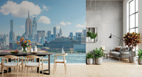 Bring the energy of New York City into your home with this skyline wallpaper for walls. The design captures the iconic silhouette of the city's skyscrapers against a bright sky. A palette of soft blues and grays creates a calming, sophisticated feel. This wallpaper works well in living rooms, home offices, or bedrooms, providing a touch of urban sophistication. Let this scenic design transform your interior, enhancing the visual depth of your rooms and acting as a stunning backdrop for your furnishings.