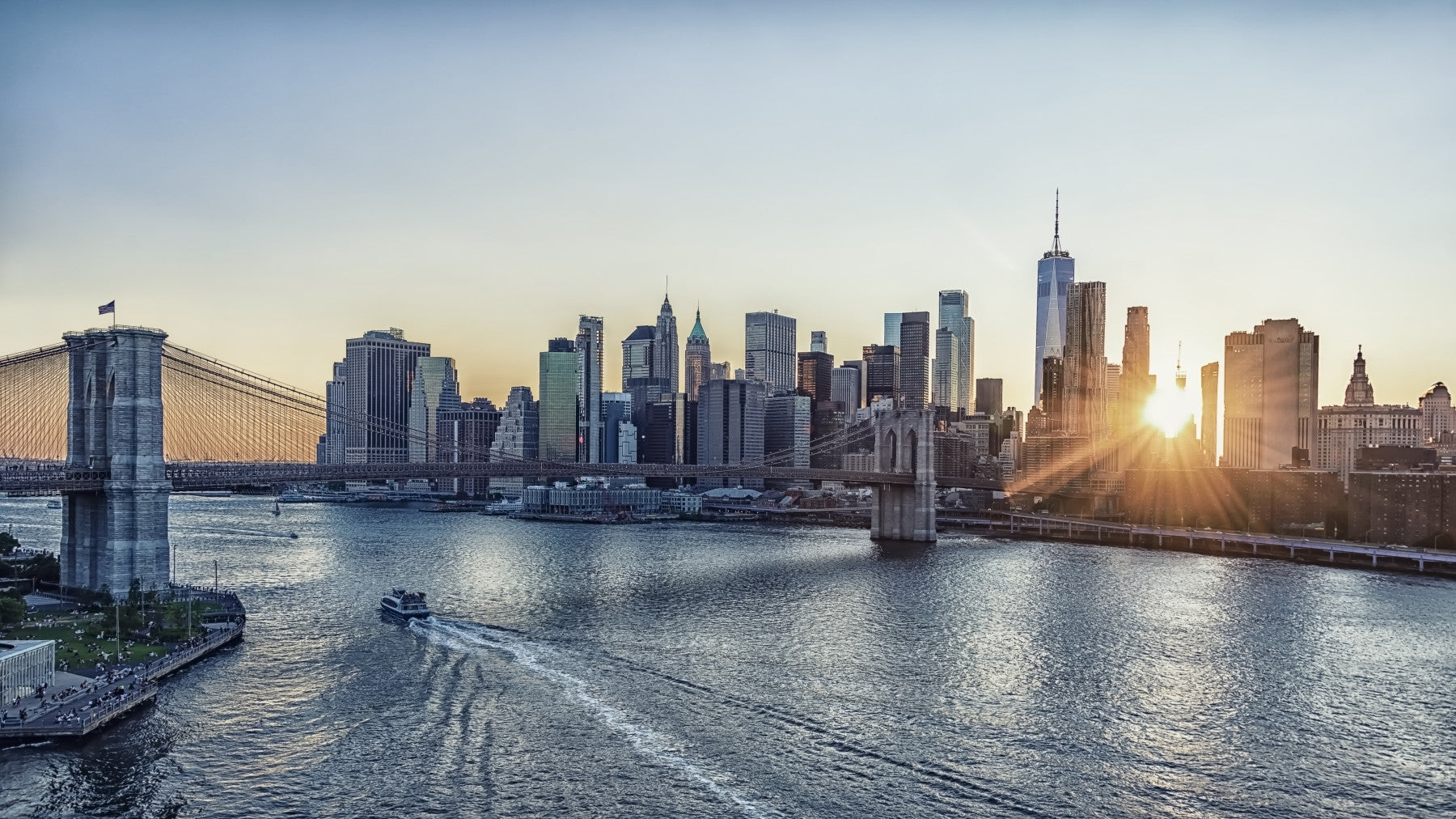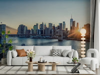 Bring the iconic New York City skyline into your home with this striking wallpaper for walls. Capture the vibrant energy of the city at dawn, featuring the Brooklyn Bridge and gleaming skyscrapers. The soft blues and warm sunrise create a serene yet urban atmosphere, perfect for a living room, home office, or bedroom. This design adds a touch of modern sophistication and architectural elegance, transforming any space into a stylish urban retreat. Let the city's energy inspire your everyday life, creating a space that reflects both ambition and tranquility. The level of detail creates depth in a room.