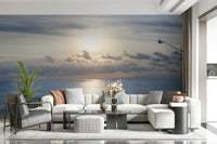 Experience the captivating allure of 'Ocean's Golden Embrace,' a wallpaper designed to transport you to a tranquil coastal haven. The image showcases a breathtaking sunset, where the sun's golden rays pierce through a veil of delicate clouds, casting a radiant glow upon the tranquil ocean. The water's surface mirrors the celestial spectacle, creating a mesmerizing interplay of light and shadow. This wallpaper is more than just a visual; it's an invitation to unwind, find solace, and let the calming energy of the ocean wash over you. Its soft, natural color palette seamlessly integrates into various interior settings, adding a touch of sophisticated serenity to your personal sanctuary.