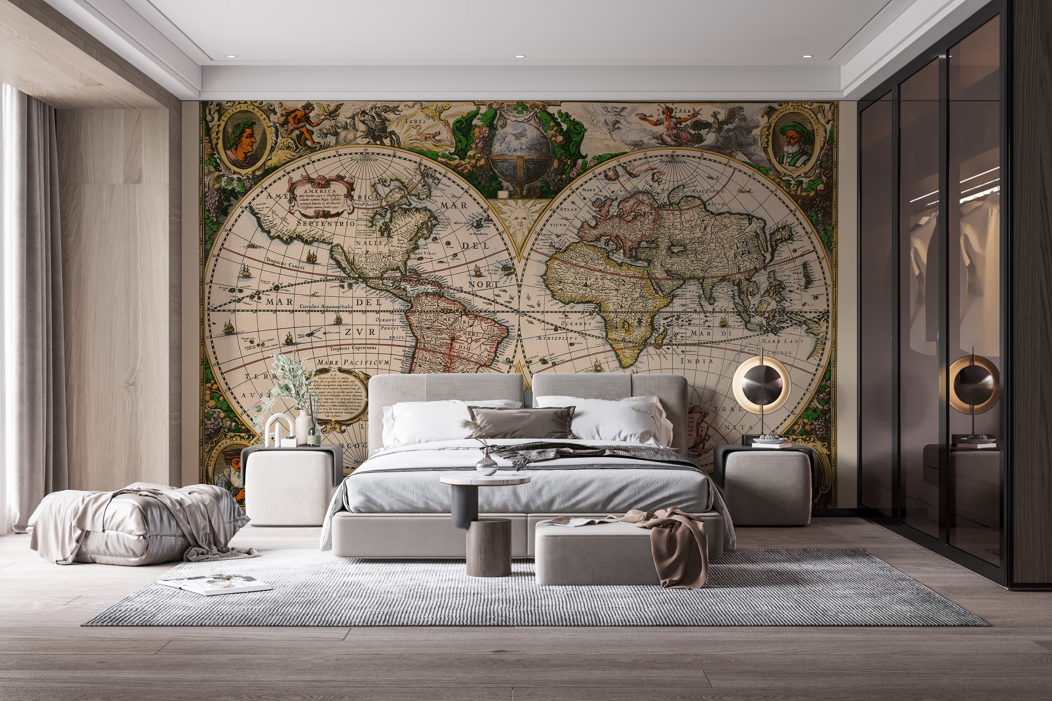 Crafted for the discerning individual who appreciates vintage aesthetics, this vintage wallpaper serves as more than just decoration; it's a conversation starter, a piece of art that tells stories of ancient lands and forgotten tales. Invite the world onto your walls and let the old-world charm of our vintage world map wallpaper captivate all who enter. Discover the perfect blend of history and style with our map wall murals—an enduring addition to any space seeking character and depth.