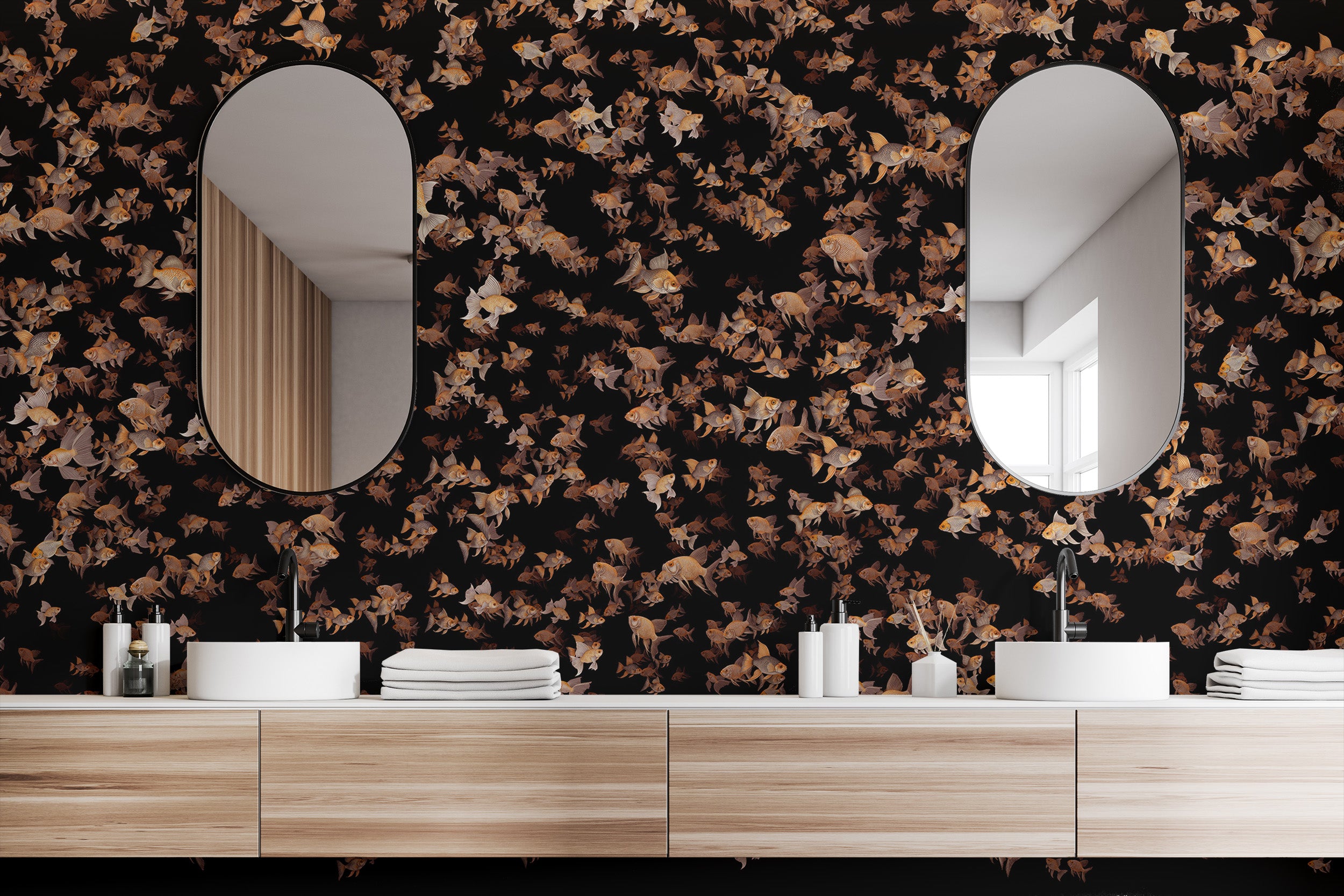 Dive into the deep charm of your space with our Orange Little Fish Black Background Wallpaper Murals. Imagine the serene, mysterious depths of the ocean brought to life on your walls, where vibrant orange fish dance across a stark black canvas. This bold design not only adds a splash of color but also introduces a dynamic, playful vibe to any room. Perfect for creating a focal point in living areas, bedrooms, or even offices, this wallpaper mural transforms your space into an underwater haven. Its high-quality, durable material ensures a stunning display that captures the imagination and invites conversation. Easy to apply, this orange background wallpaper mural turns wall decorating into an effortless, enjoyable experience. Let your walls tell a story of aquatic adventure and bring a touch of the ocean's majesty into your home.