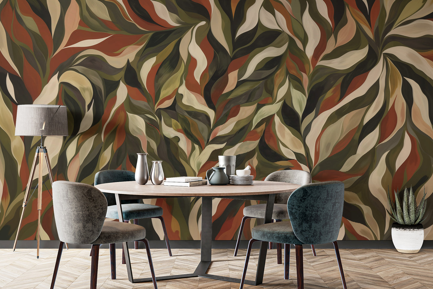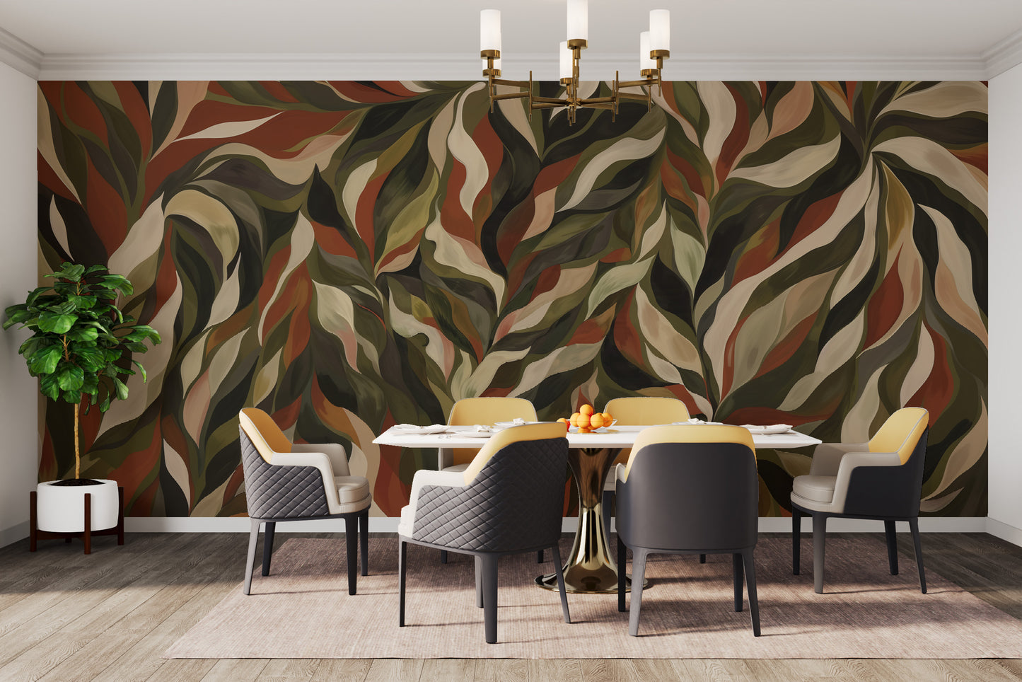 Let your space flow with the very pulse of nature through Organic Flow Abstract Leaf Wallpaper. Swirling leaves and organic textures orchestrate a palette of earthy greens, browns, and beiges, telling a story of fluid artistry. The abstract leaf patterns create a sense of movement and warmth, making it perfect for modern, bohemian, or nature-inspired interiors. The wallpaper creates not just a cozy space in your living room but also depth in a calm bedroom as it transforms the wall into an ever-living canvas of natural elegance. Unique art meets nature to uplift the decor with flow and peace into the home.