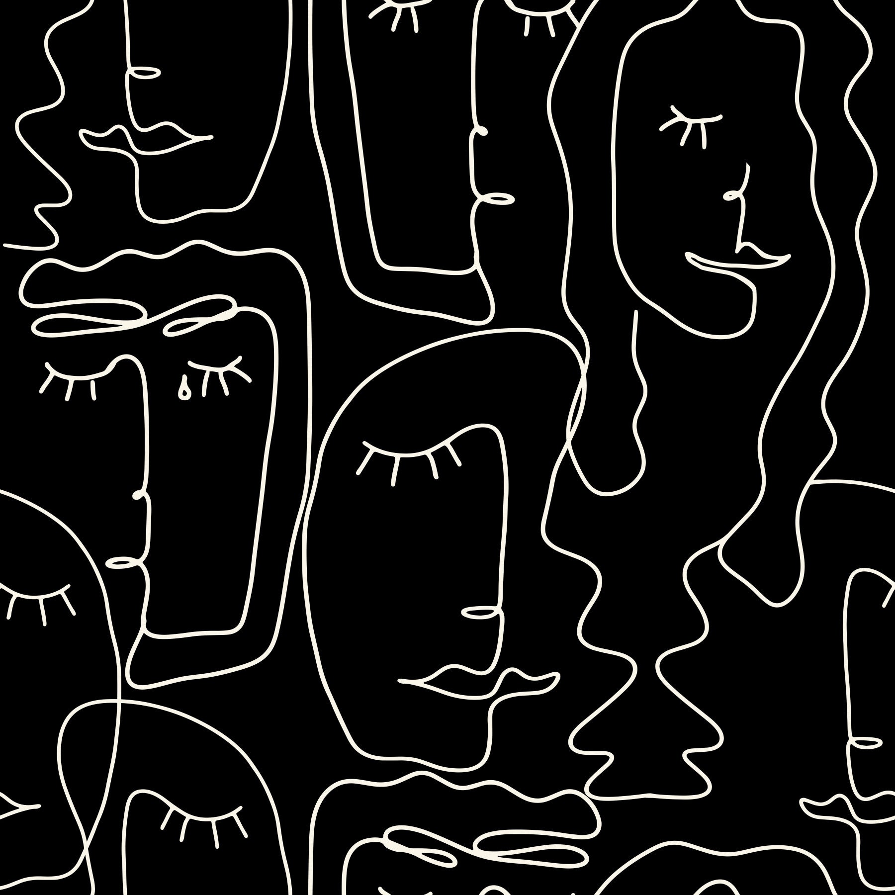 Elevate interiors with this abstract faces pattern, a striking wallpaper for walls that showcases simple line drawings. The clean, cream-colored lines create a unique design against the dark background. It's an artistic touch that makes any room special. Imagine this design in a modern living room, a stylish bedroom, or even an office. The monochrome palette adds refinement, easily complementing interiors with various color schemes and design preferences. It’s sure to be a conversation starter.