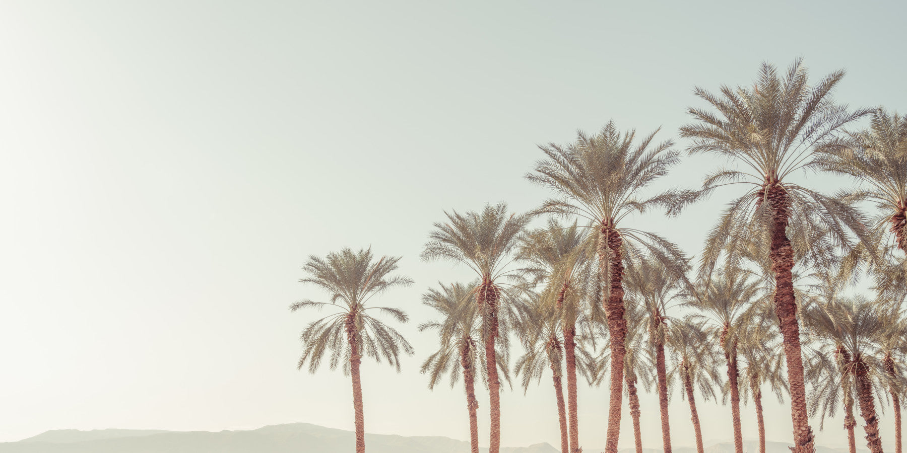 Muted desert-inspired palm trees printed on a calming oasis-themed wallpaper.