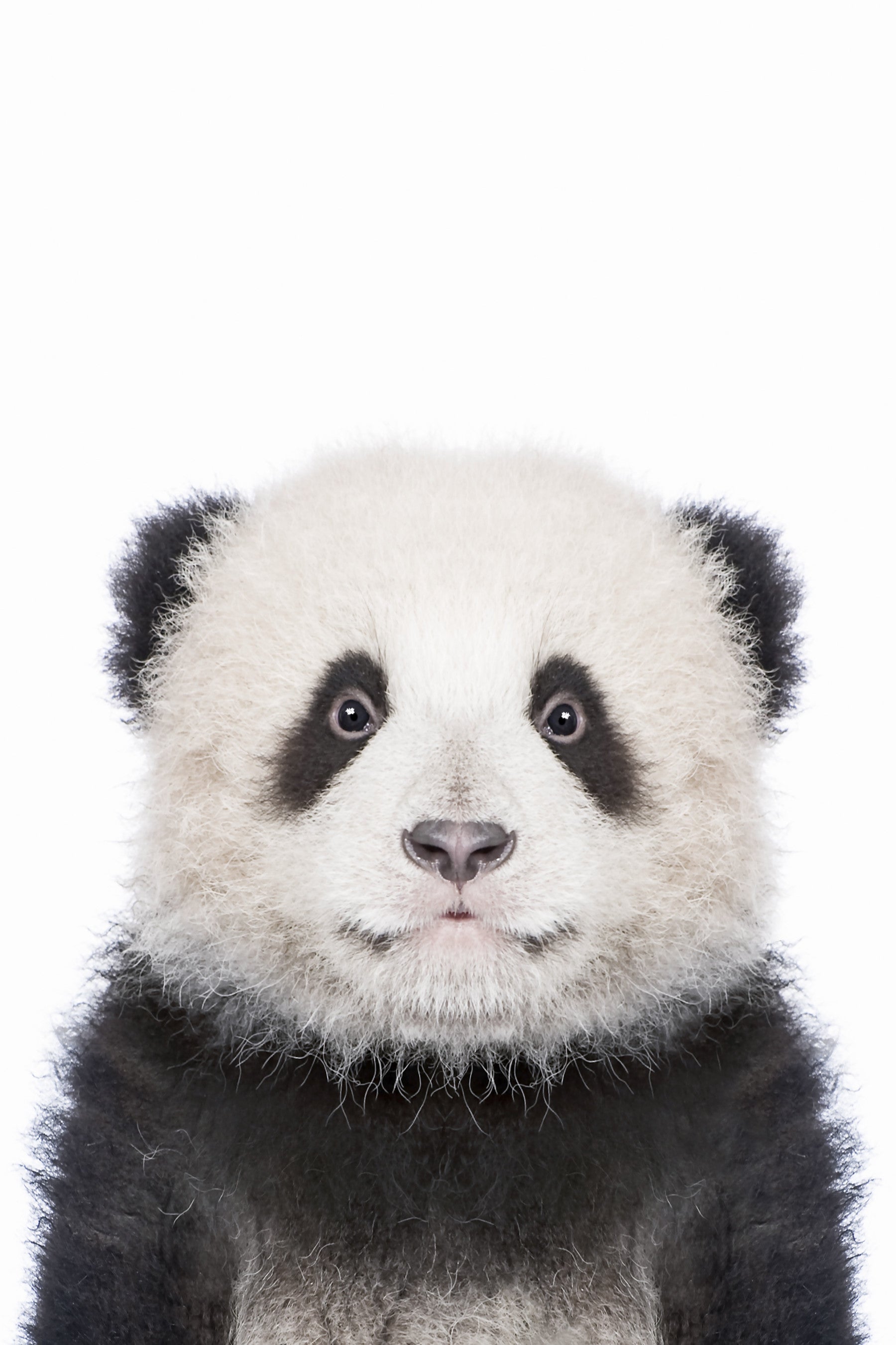 An adorable close-up of a baby panda's face against a stark white background. Its fluffy, soft fur is the undeniable star, showcasing the iconic black and white markings around its expressive eyes. The innocent and curious gaze of this young panda evokes feelings of warmth and tranquility, making it the perfect wallpaper for those seeking a touch of gentle charm and natural beauty. The image's simplicity and high contrast create a visually striking and peaceful aesthetic, ideal for a calming and soothing digital backdrop.