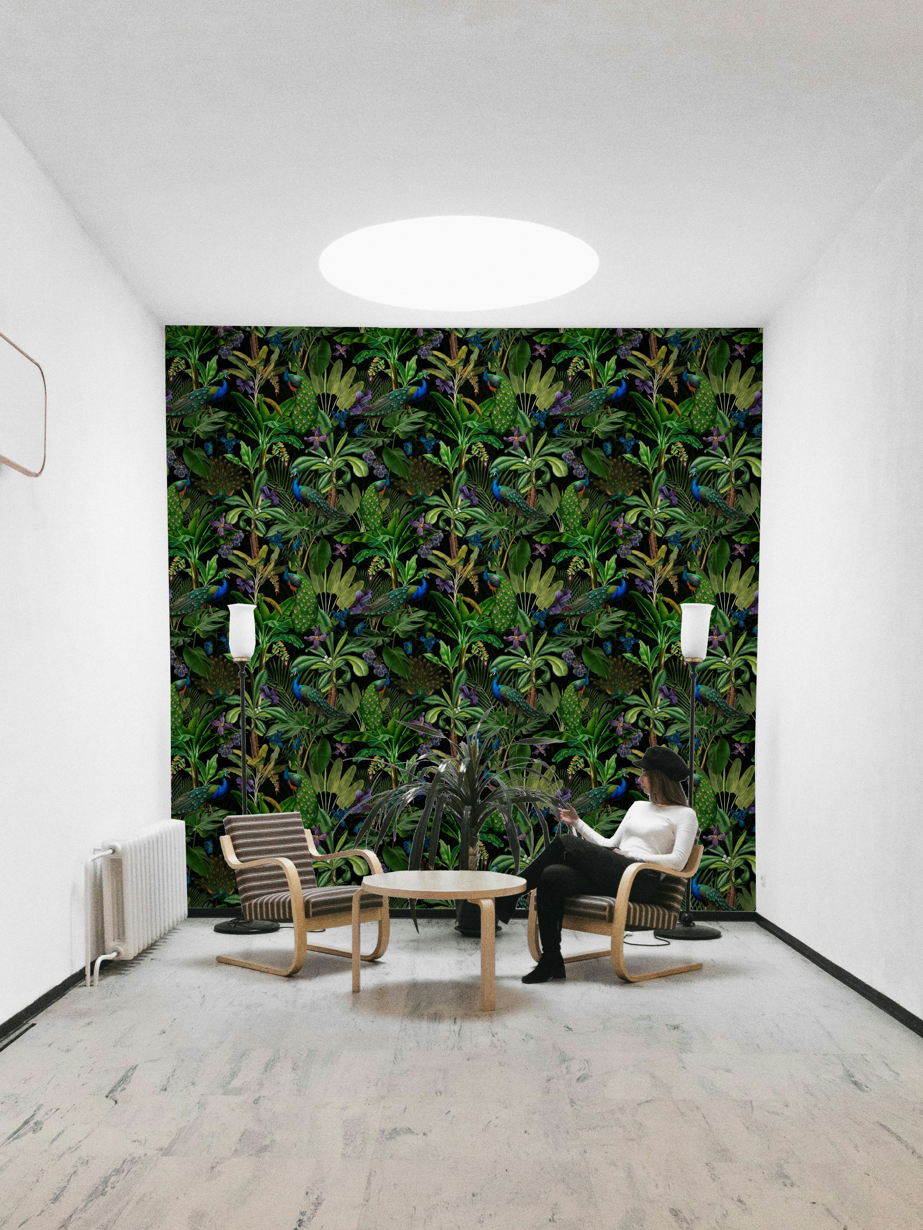 Peacock Midnight Paradise mural bringing exotic elegance to your space.