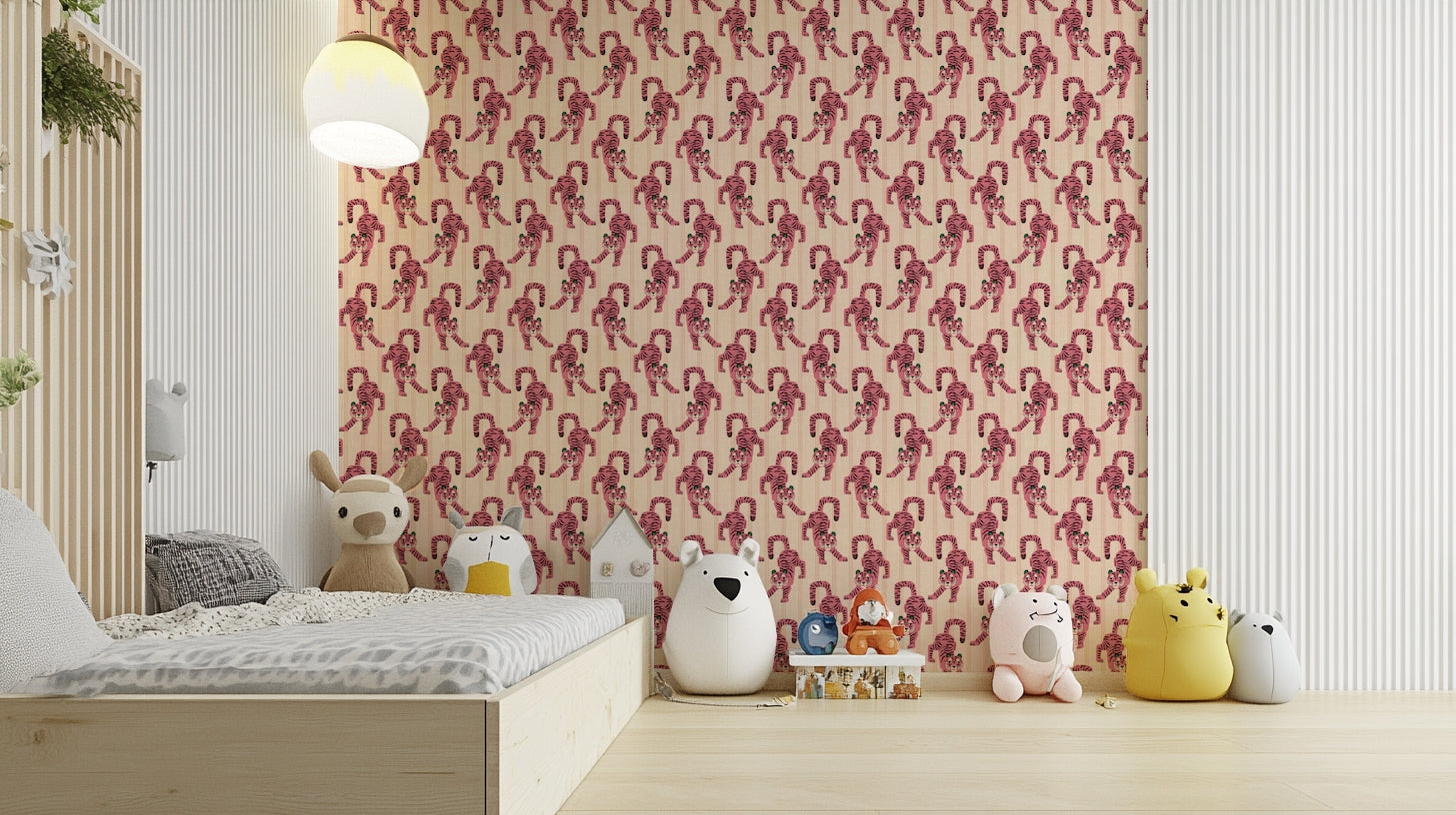 Pink jumping tiger jewel jungle wallpaper for vibrant rooms