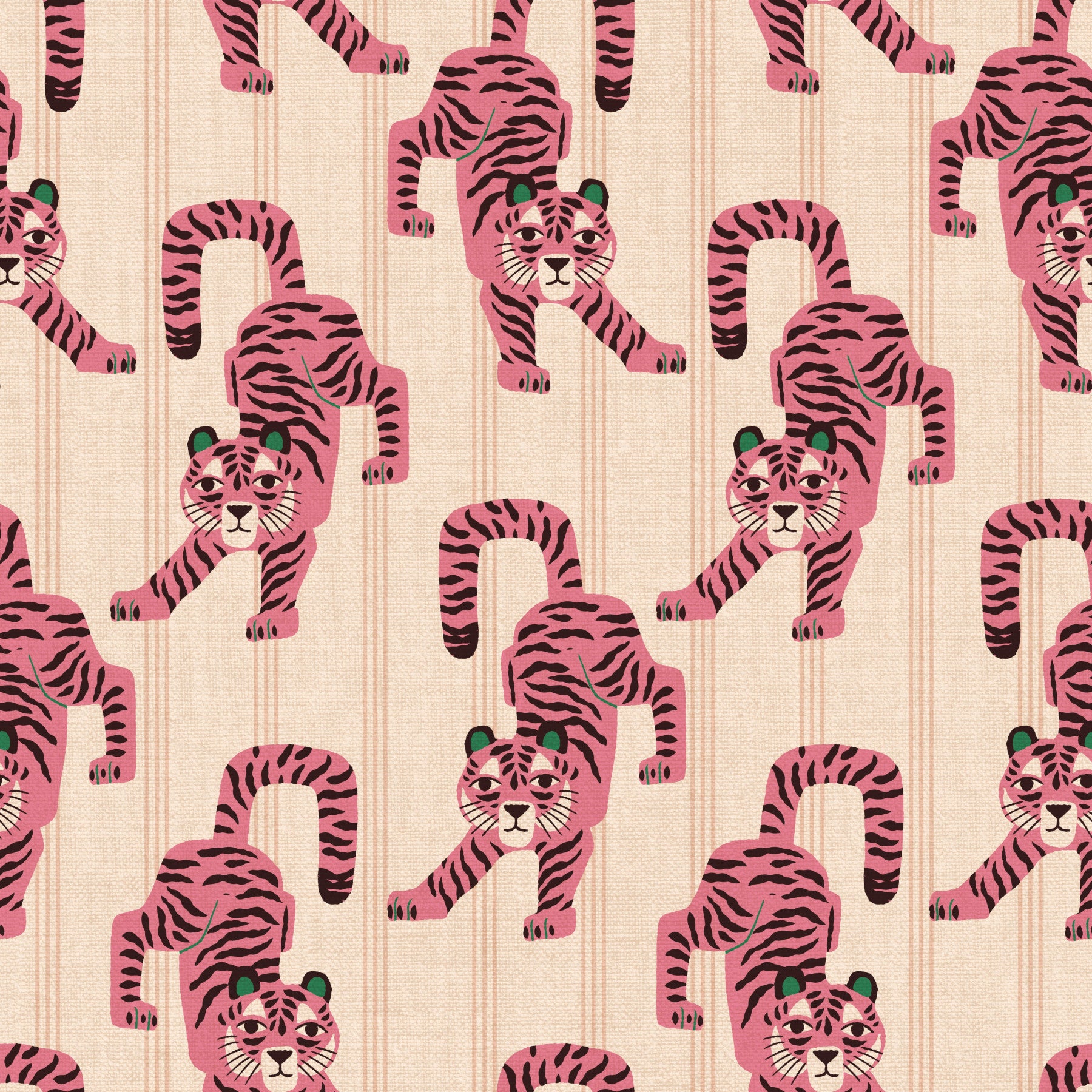 Vibrant pink tiger wallpaper with jungle jewel accents