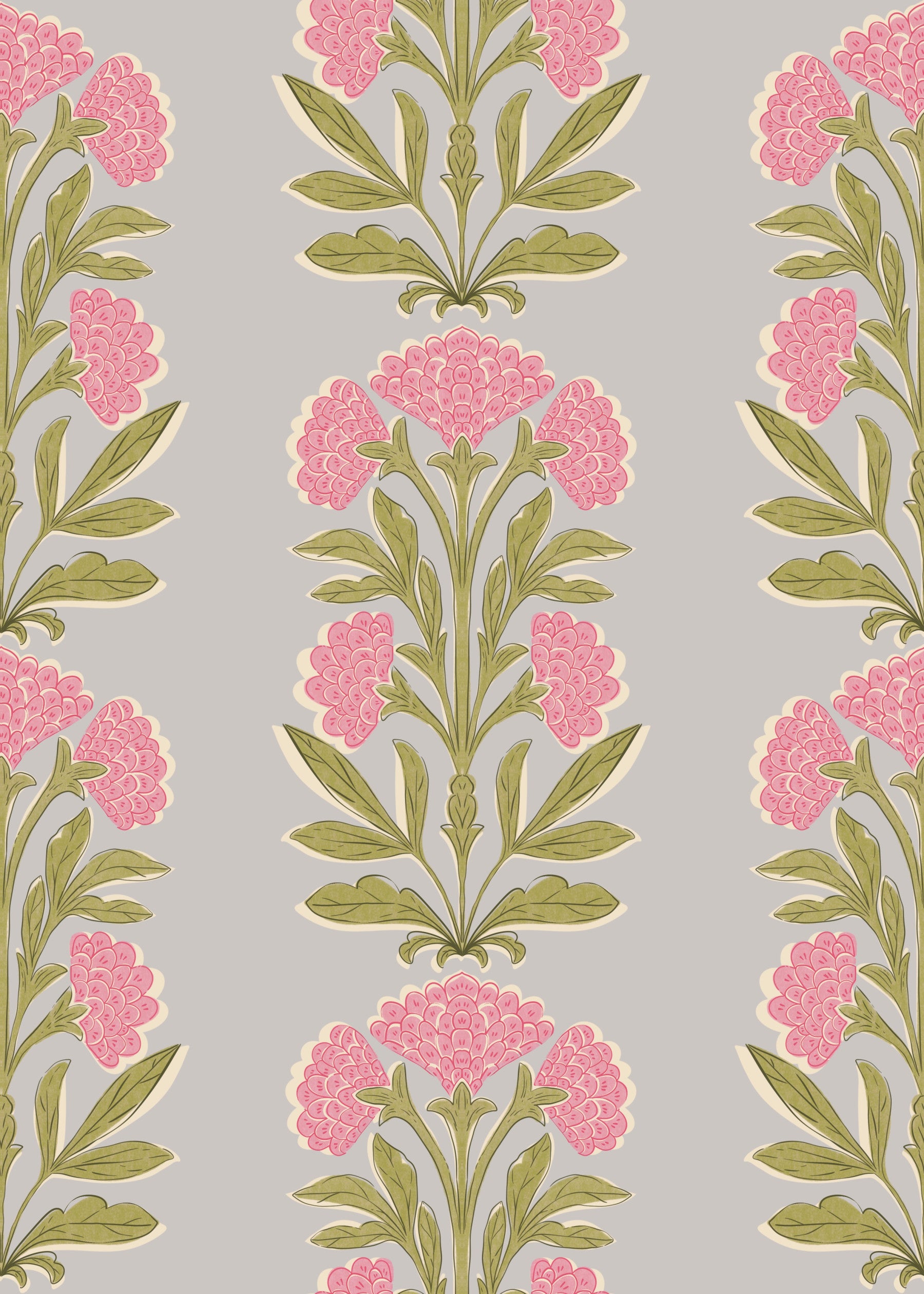 Pink Mughal Bloom Symmetry Wallpaper⁠