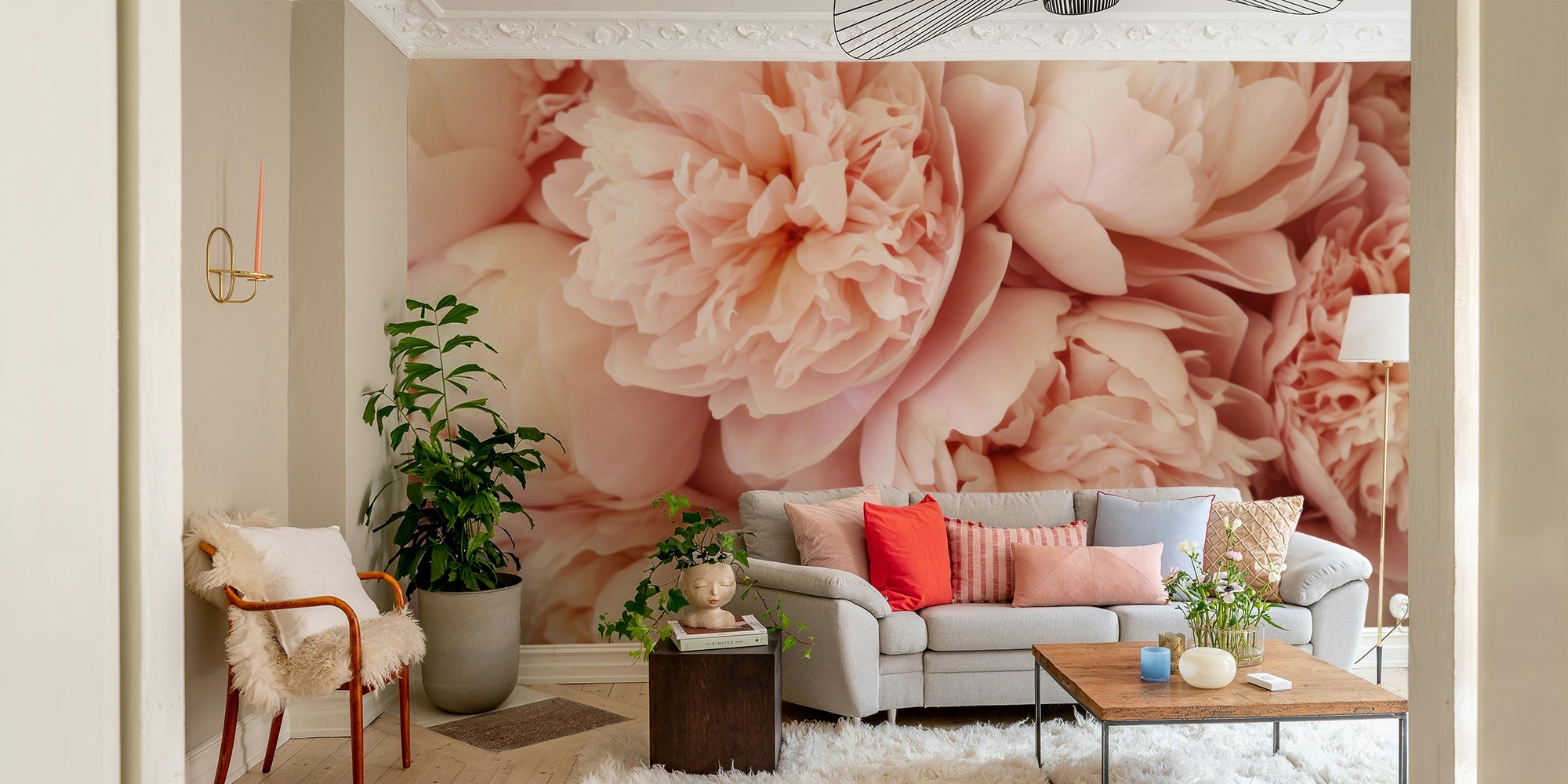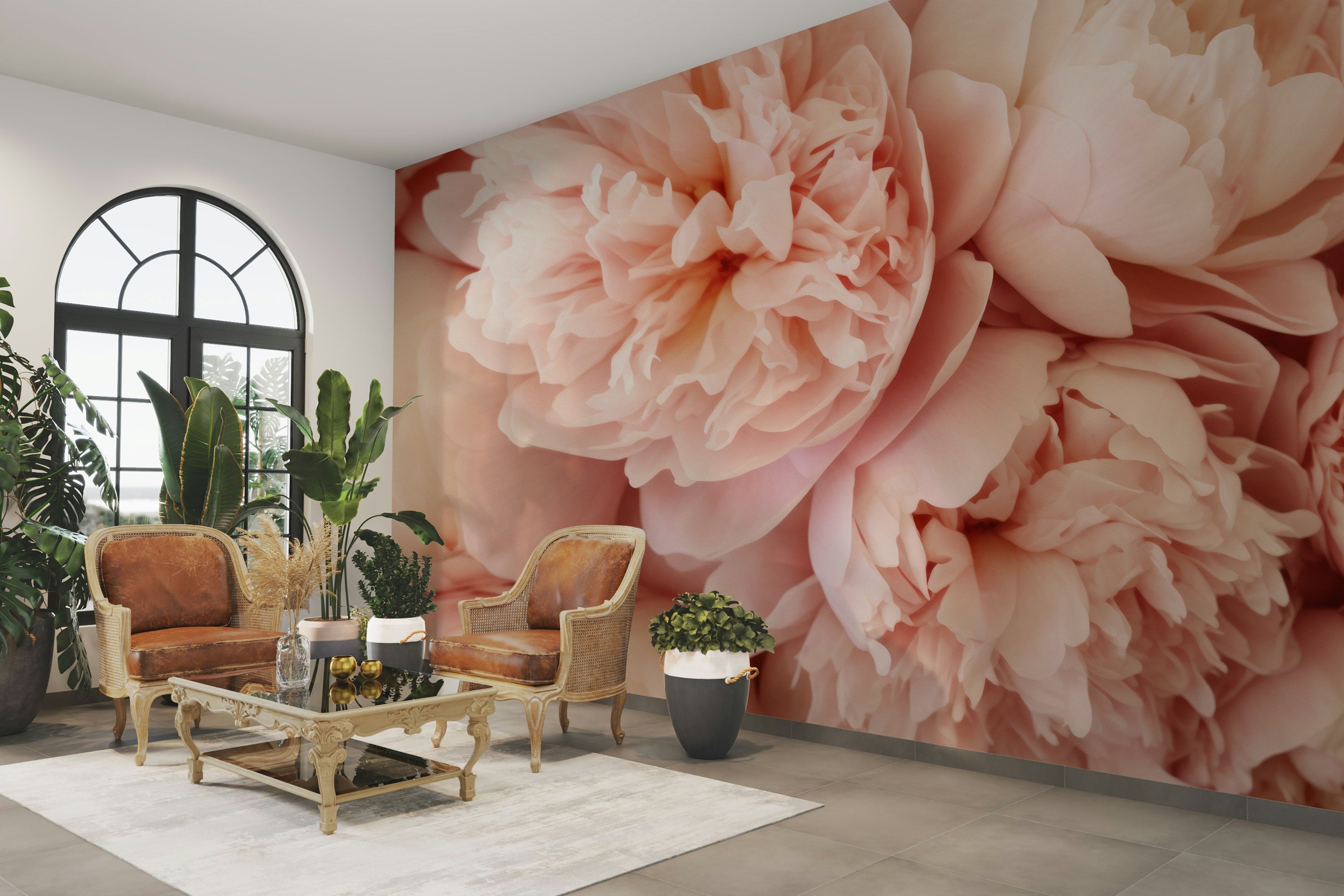 Escape into a world of gentle beauty with this dreamy pink peony wallpaper. The soft, almost ethereal, pink tones create a calming and romantic ambiance. The densely packed petals of the peonies create a luxurious texture, bringing a sense of peace and serenity to any room. Perfect for bedrooms, nurseries, or spaces where a touch of gentle femininity is desired. The close-up view allows for full appreciation of the delicate details of each bloom, making it a visually captivating and stylish addition to your interior.