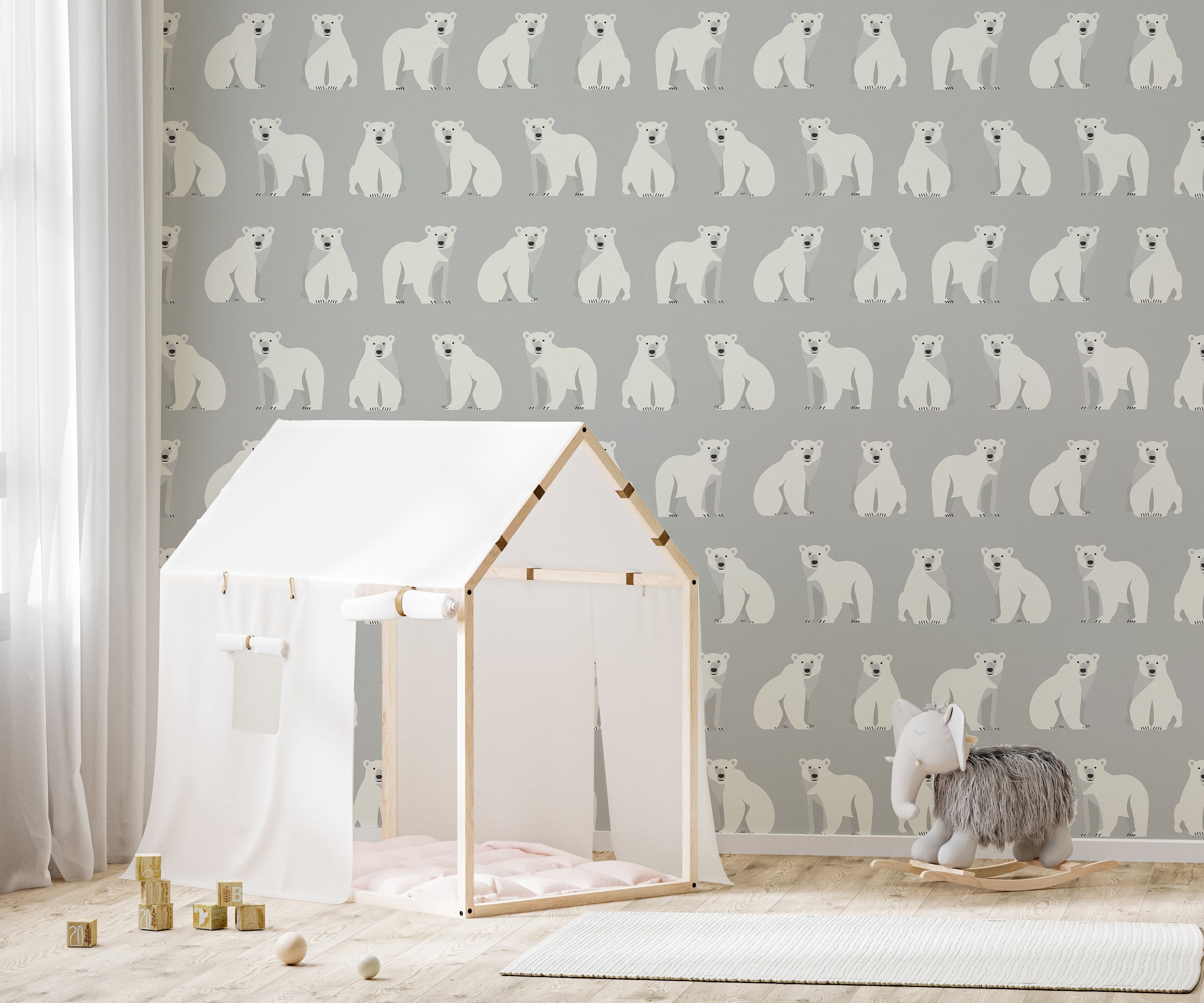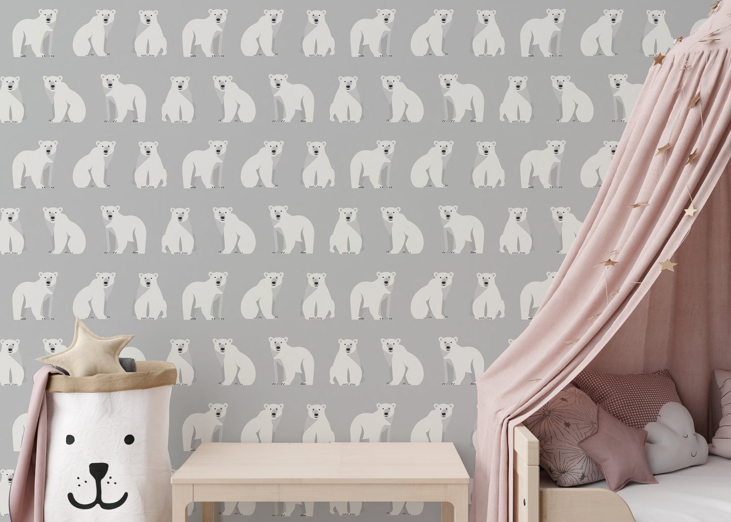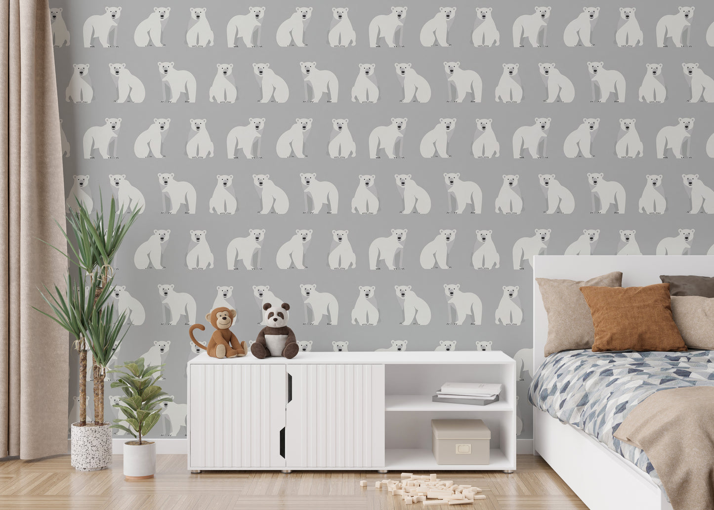 Polar Trio Arctic Bear Wallpaper brings the Arctic magic right into your home. Covered in cute polar bear illustrations in different poses, this adorable design creates a cozy, playful vibe in nurseries, kids' rooms, or winter-themed spaces. The gentle, neutral backdrop enhances the minimalist yet whimsical appeal, making it a versatile pick for modern interiors. Inspired by the beauty of Nordic wildlife, this wallpaper creates a tranquil, welcoming space in itself. Whether it's for a child's room or a cozy reading corner, it transforms any space into an elegant, frigid wonderland.