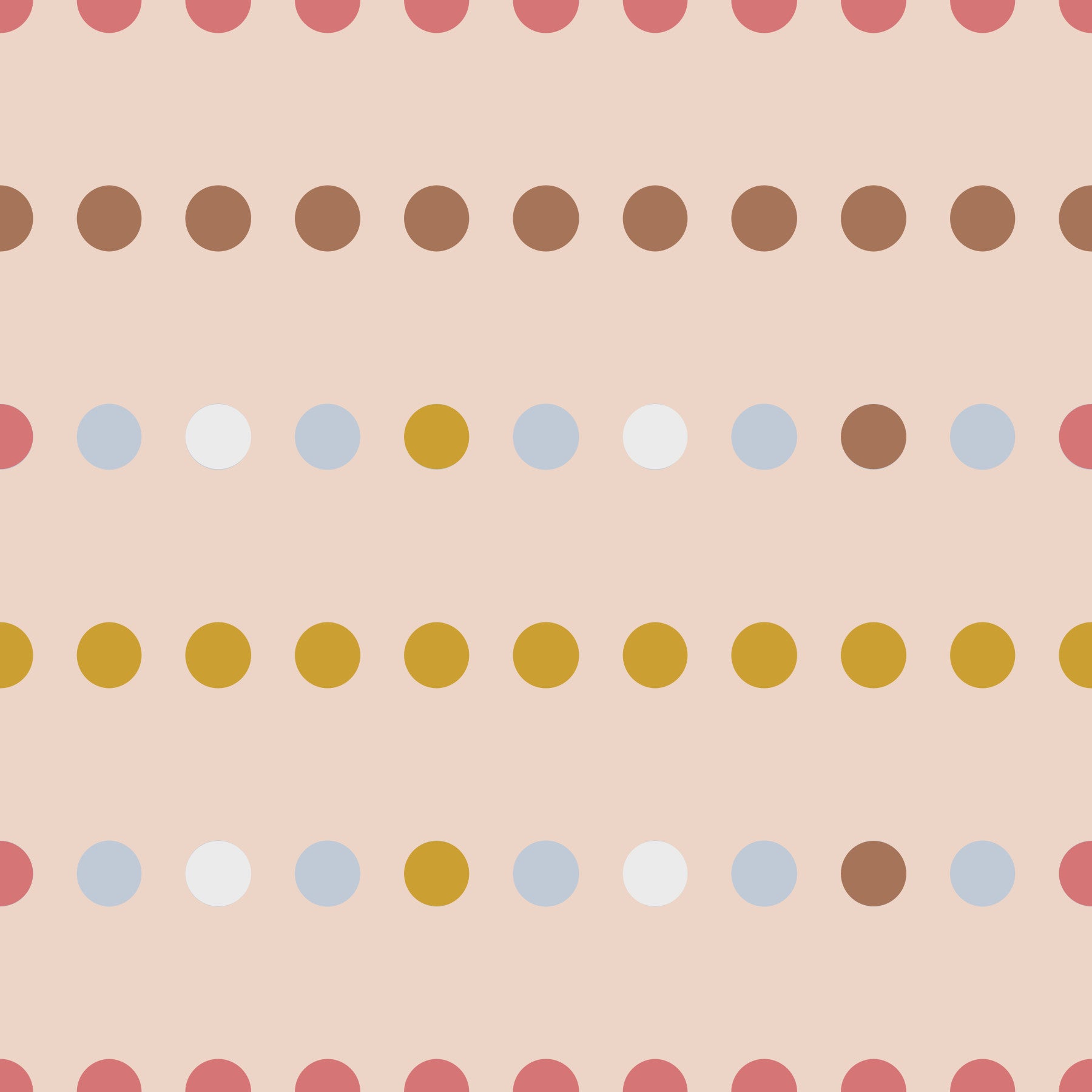 Let your walls join the parade with this playful polka dot design! The wallpaper features orderly rows of circles in a muted color palette of beige, brown, gold, and pale pink. This geometric pattern adds a touch of whimsy and works well in a nursery, playroom, or kitchen. The subtle colors will not overwhelm the space. Use this wallpaper for walls to create an accent wall that brightens the room and matches neutral decor.