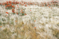 Transform your space with this serene field of poppies. Golden wheat sways gently, dotted with bursts of red poppies. This wallpaper for walls brings the calmness of the countryside to any room. It particularly suits a living room or bedroom, where its soft tones and floral design will add a touch of nature and peace. The design complements interiors, creating a tranquil and inviting space.