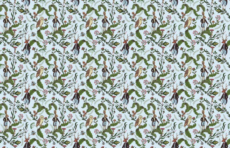 Crafted with high-quality materials, our rabbit and owl on green background wallpaper ensures durability and ease of application. Its fade-resistant inks keep the design looking fresh and vibrant for years to come. Whether you're looking to refresh your living room, bedroom, or children's play area, this Rabbit & Owl wallpaper transforms your walls into a magical forest scene. Elevate your interior design with this enchanting and visually stunning wallpaper.