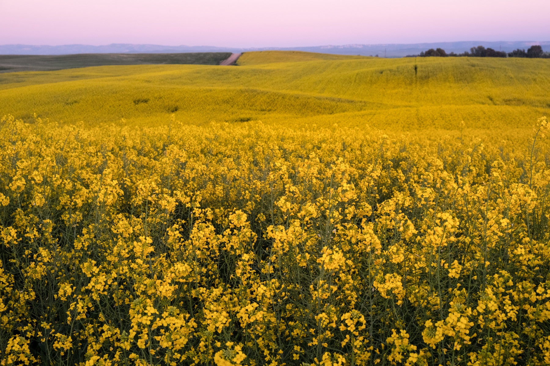 Breathe life into your interiors with this stunning vista of flowering fields. The design bursts with bright yellows, bringing a sunny and energizing vibe to any room. Install this wallpaper for walls in your living room, dining room, or bedroom to create a vibrant focal point. The rolling landscape introduces depth and charm, while the yellow hues complement both neutral and colorful furnishings. Let this joyful image transform your space with its scenic allure.