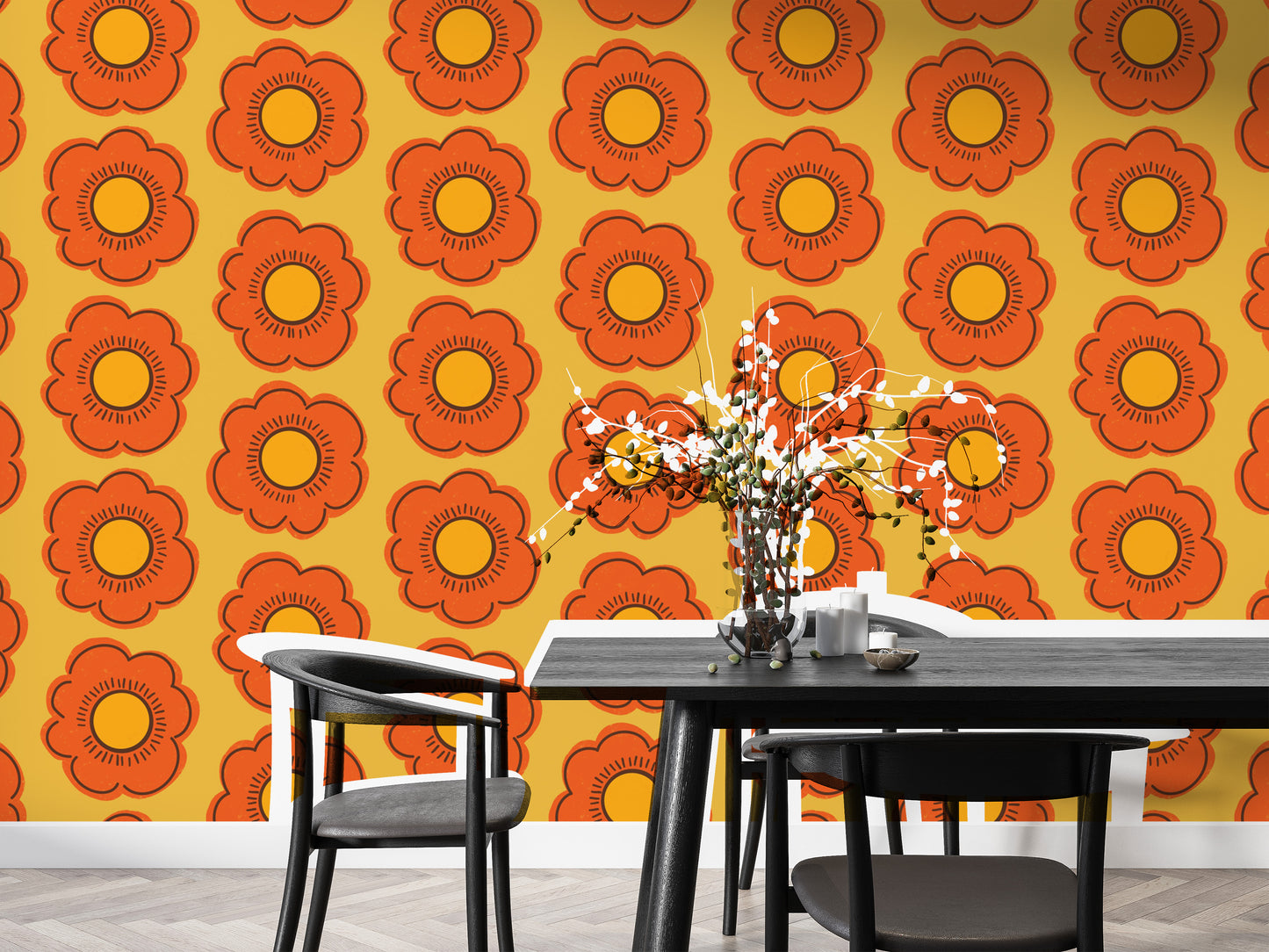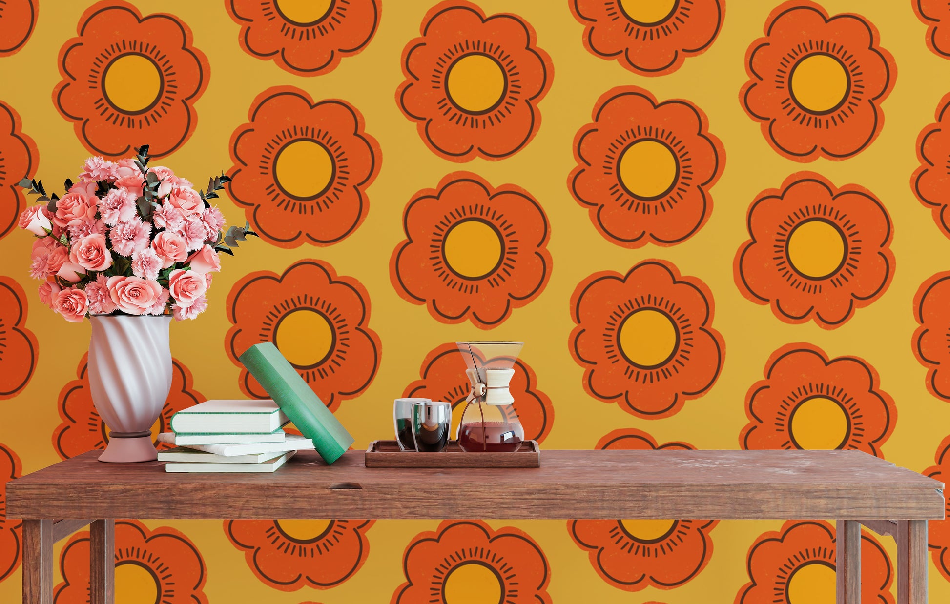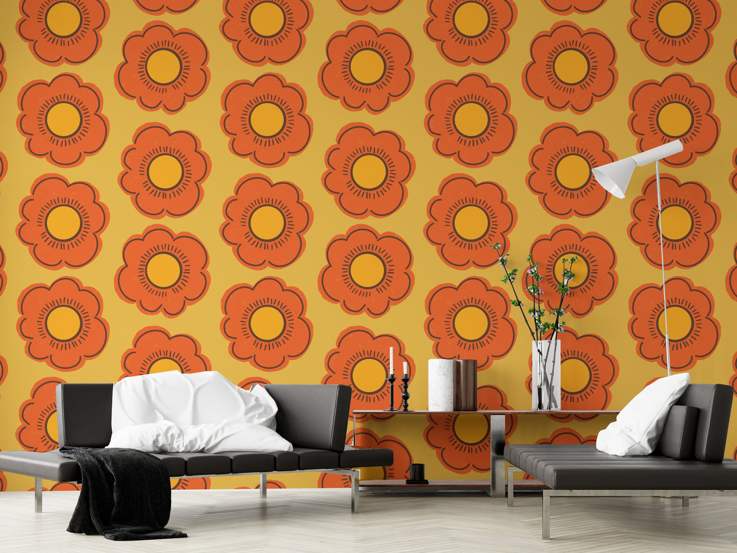 Retro Sunflower Wallpaper for bold wall designs