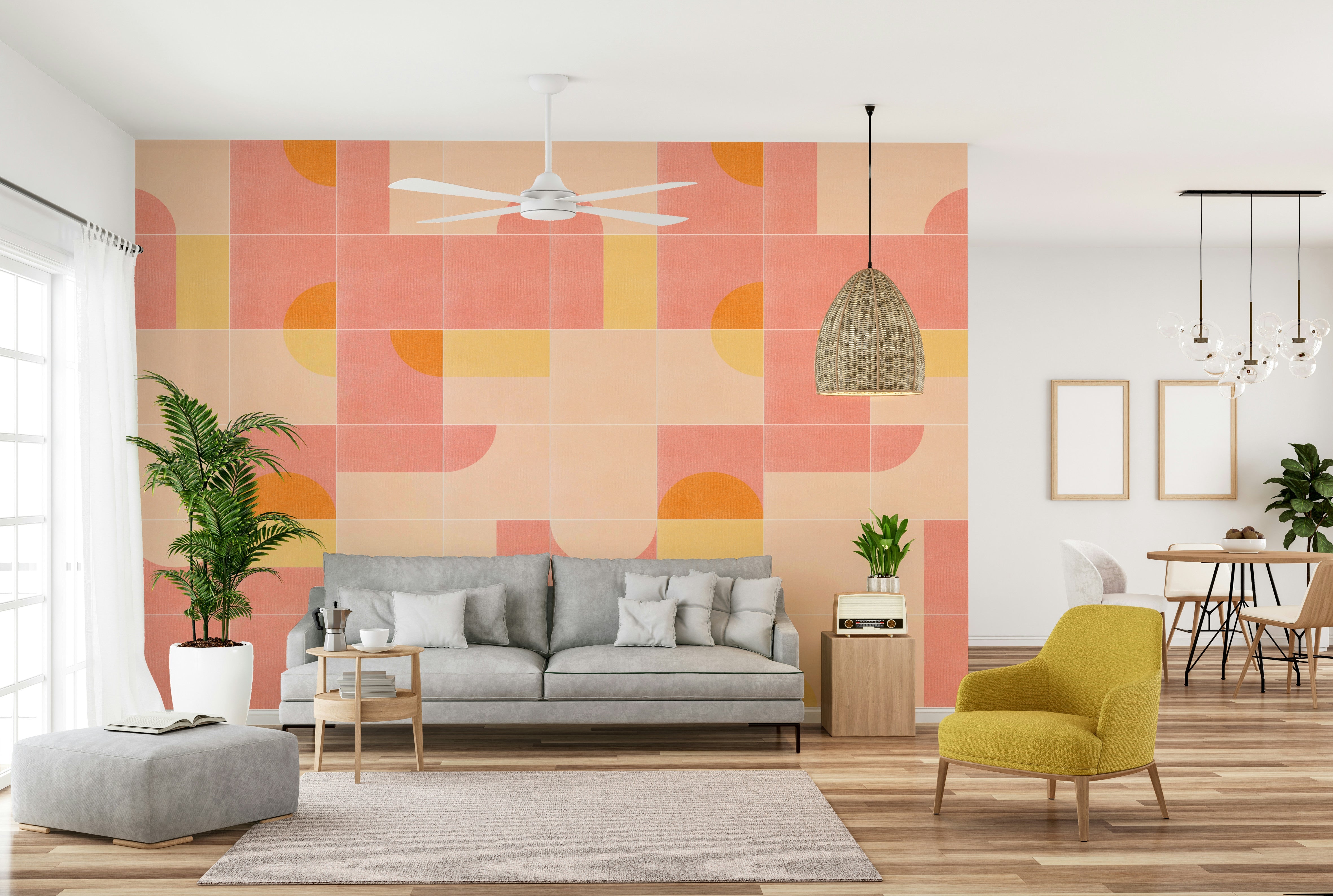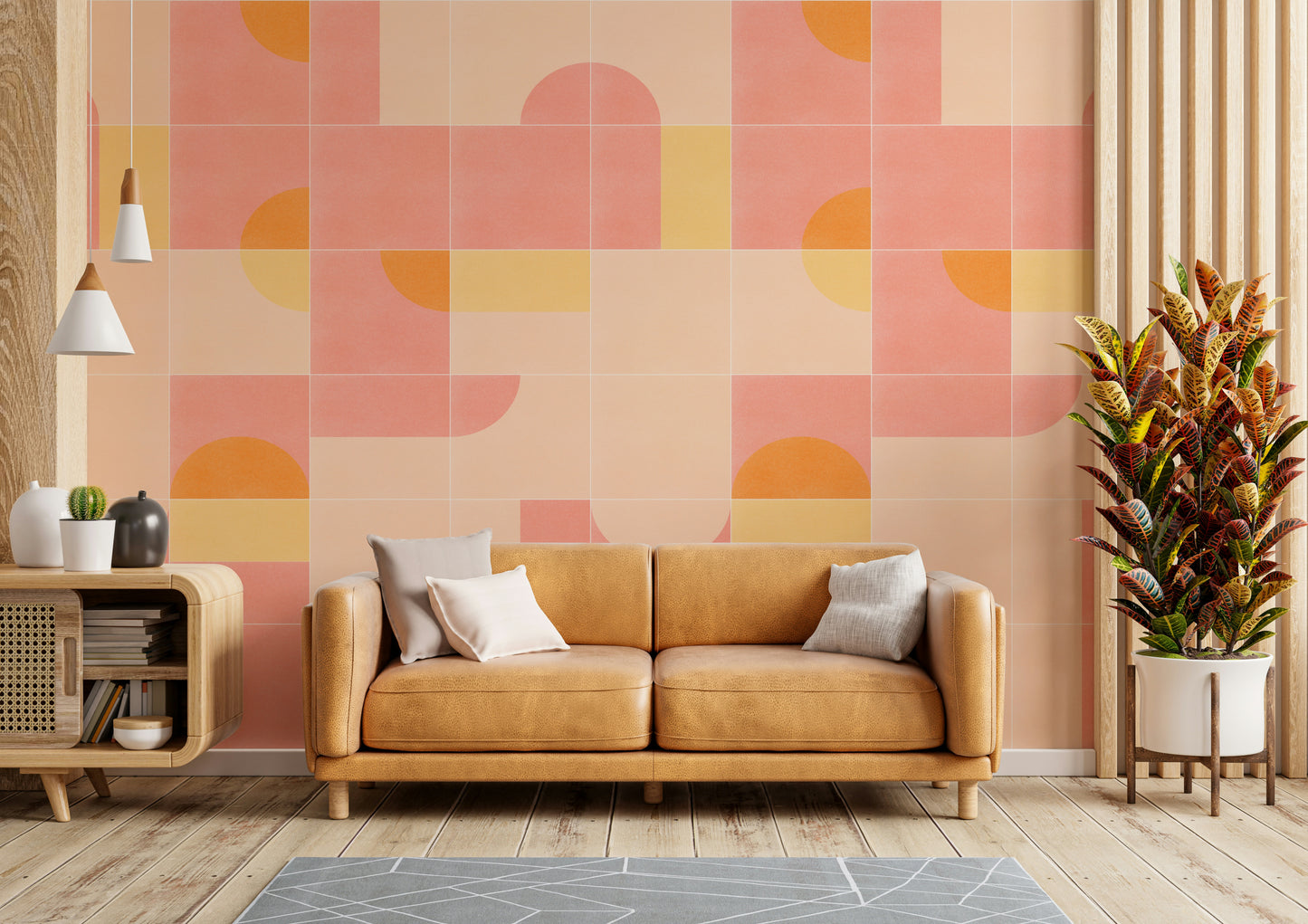 Bold geometric patterns in retro tiles for vibrant wall mural