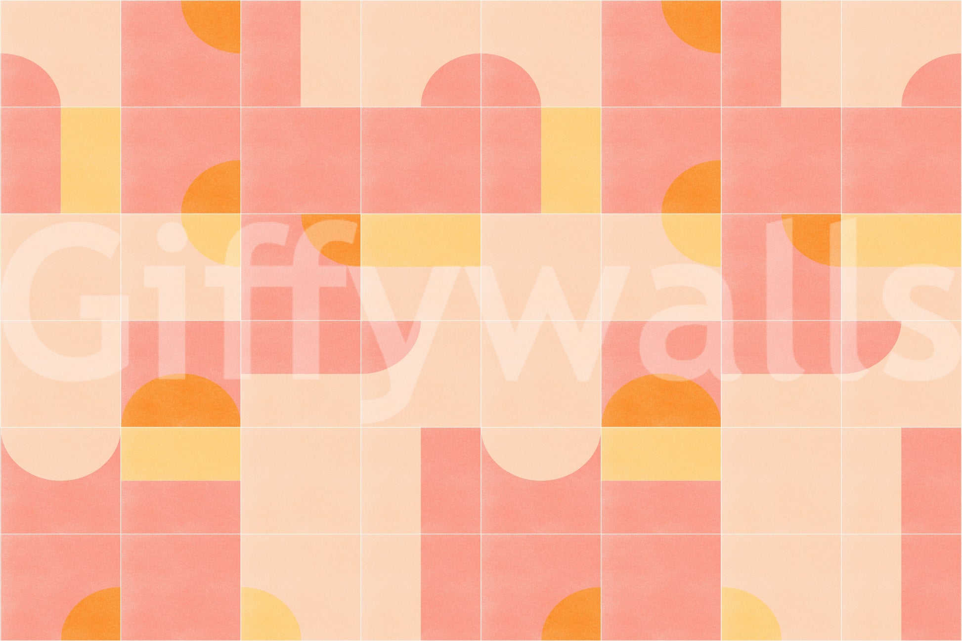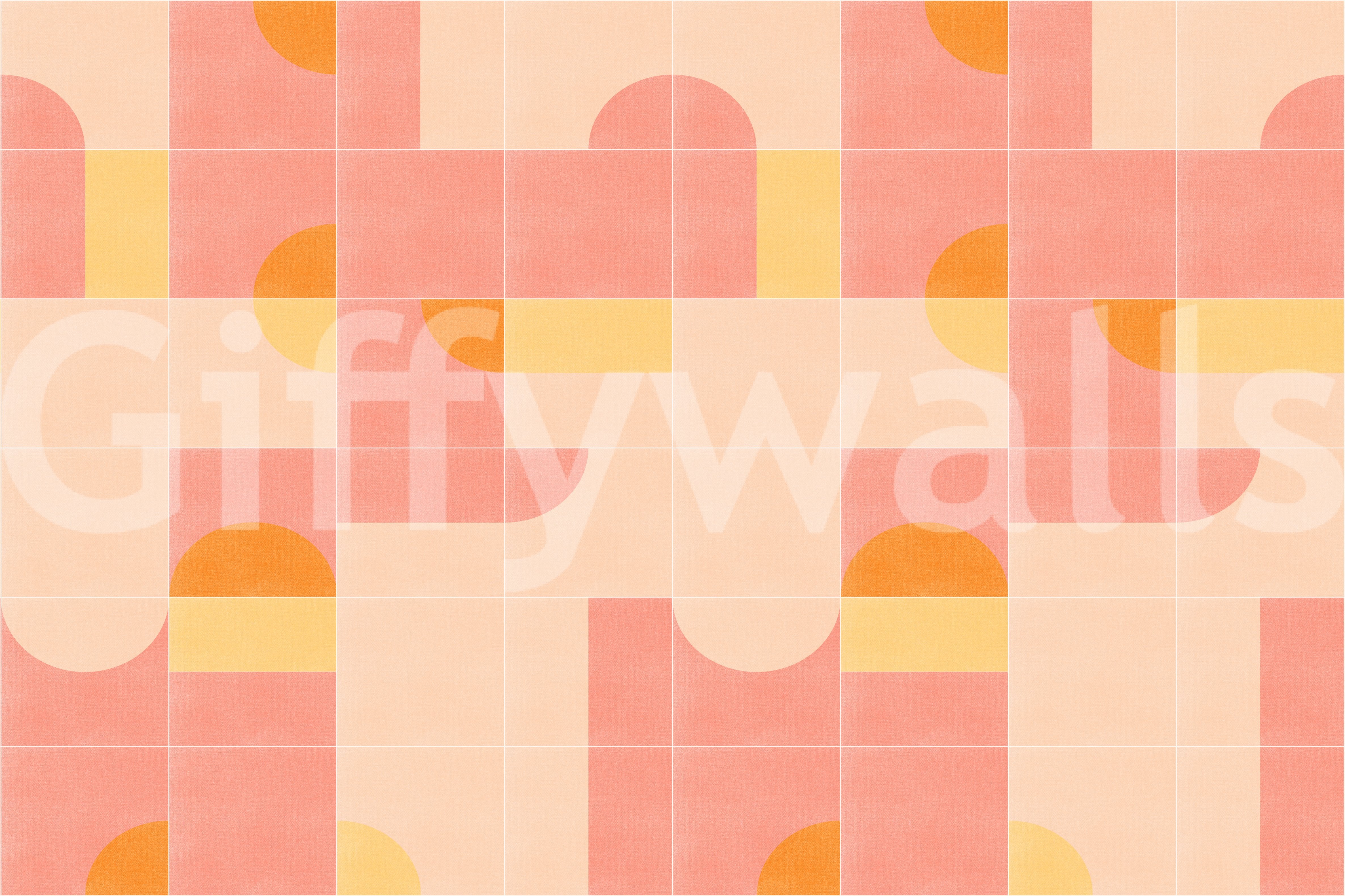 Step back in time with Retro Tiles 02 a wallpaper that brings the warmth and geometric charm of mid-century modern design to your digital space. This delightful pattern features a grid of interlocking squares in a soothing palette of peach, salmon, and sunshine yellow. Bold, confident semi-circles add a playful dynamic, creating a visually engaging yet calming aesthetic. The subtle texture lends depth and tactility, giving the impression of handcrafted tiles. 'Retro Tiles 02' is perfect for anyone seeking a touch of vintage sophistication with a contemporary twist. Transform your screen into a retro haven and infuse your day with a burst of optimistic energy. Perfect for adding a stylish, nostalgic touch to any device.