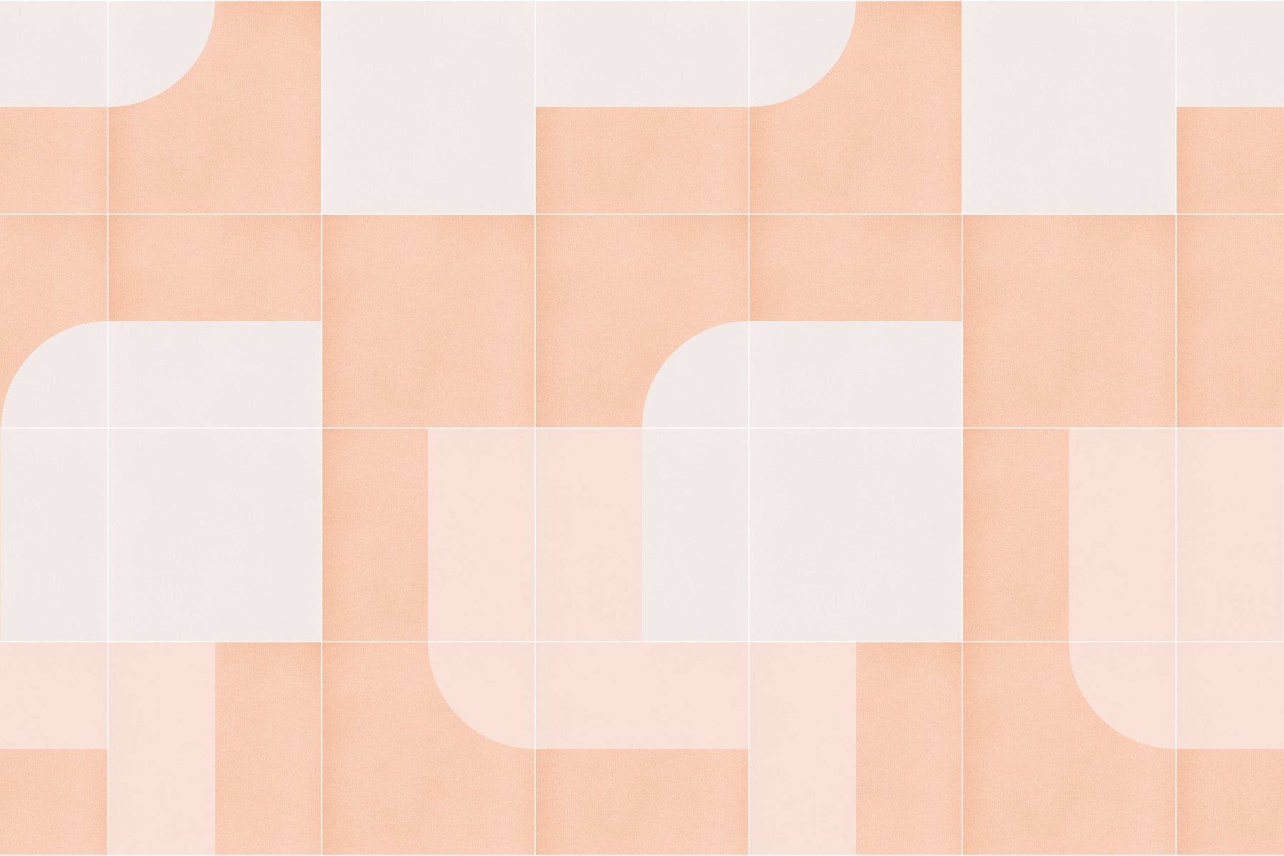 Step back in time with Retro Tiles 04 a captivating wallpaper that reimagines classic mid-century design. This pattern features a playful arrangement of geometric shapes, softened by rounded corners and presented in a soothing palette of pastel peach and creamy white. The grid layout evokes a sense of order and structure, while the interspersed quarter circles inject a touch of whimsy and retro charm. The subtle texture applied to the peach sections adds depth and visual interest, giving the wallpaper a tactile, almost vintage feel. Perfect for adding a touch of retro elegance and understated sophistication to any space, "Retro Tiles 04" is a stylish choice for those seeking a calming yet visually engaging backdrop.