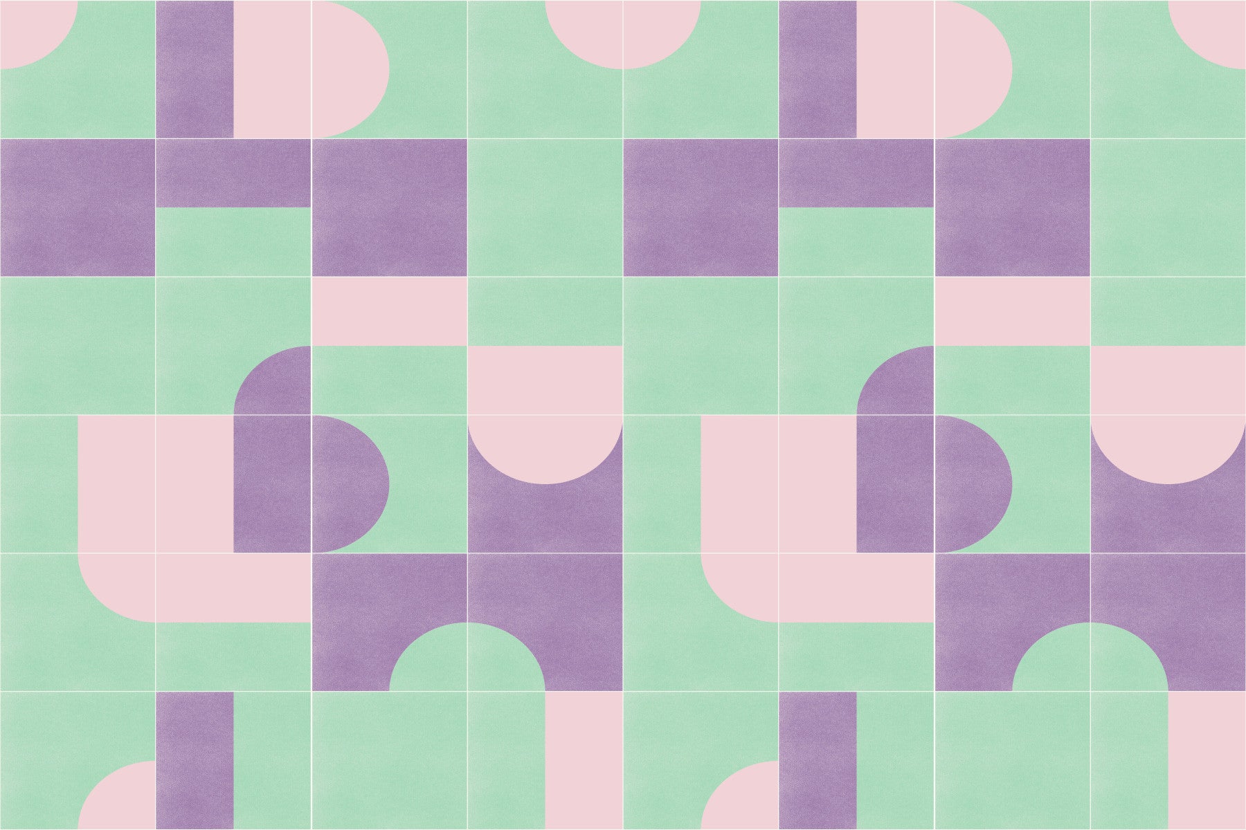 Step back into a stylish era with Retro Tiles 09 a wallpaper that reimagines mid-century modern design for the contemporary eye. This charming design features a playful grid of interconnected tiles, showcasing a harmonious blend of pastel pink, lavender purple and muted sea green. The rounded edges and semi-circular motifs soften the geometric shapes, adding a touch of whimsy to its structured layout. The lightly textured finish gives it a tactile, vintage feel, reminiscent of hand-crafted ceramic tiles. "Retro Tiles 09" brings a sense of warmth, optimism, and artistic flair to any space. Perfect for adding a retro-chic vibe to your home office, living room, or bedroom. Embrace nostalgia with a modern twist!