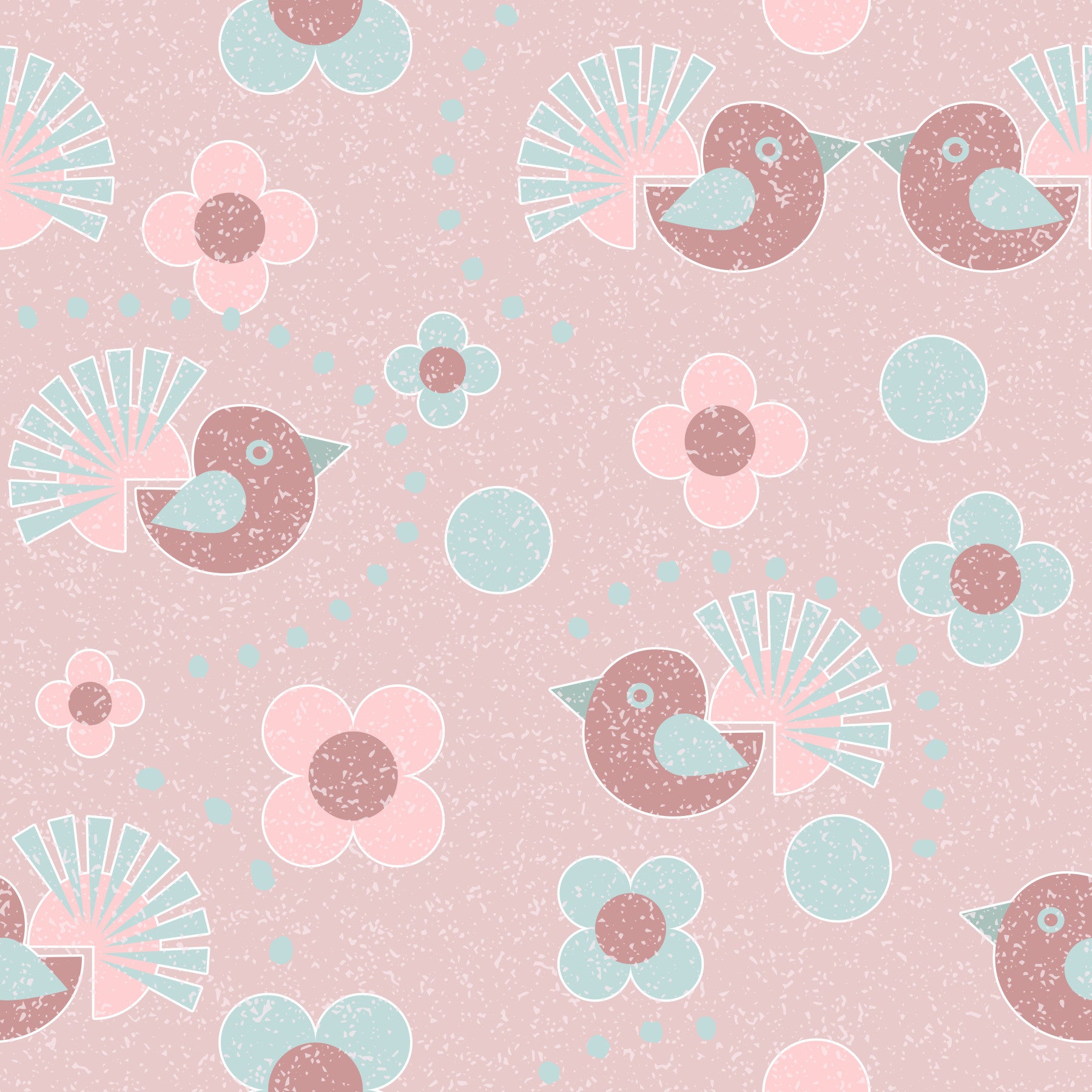Indulge in the whimsical charm of "Rosebird Delight," a delightful wallpaper that brings a touch of vintage sweetness to your digital space. This charming design features stylized rose-hued birds with intricate, fan-like wings in muted teal, gracefully interspersed among pastel pink and teal blossoms. Soft circles add a playful, dotted accent across the dusty rose backdrop, creating a visually soft and calming atmosphere. The subtle, textured effect across the entire image gives it a tactile, nostalgic feel, reminiscent of hand-painted artistry. "Rosebird Delight" is perfect for creating a serene and inviting environment, adding a touch of gentle elegance to any device. Ideal for nurseries, bedrooms, or anyone who appreciates a touch of tender, retro-inspired beauty.