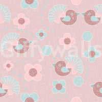 A repeating pattern of birds and roses make up this delightful Floral Wallpaper design.