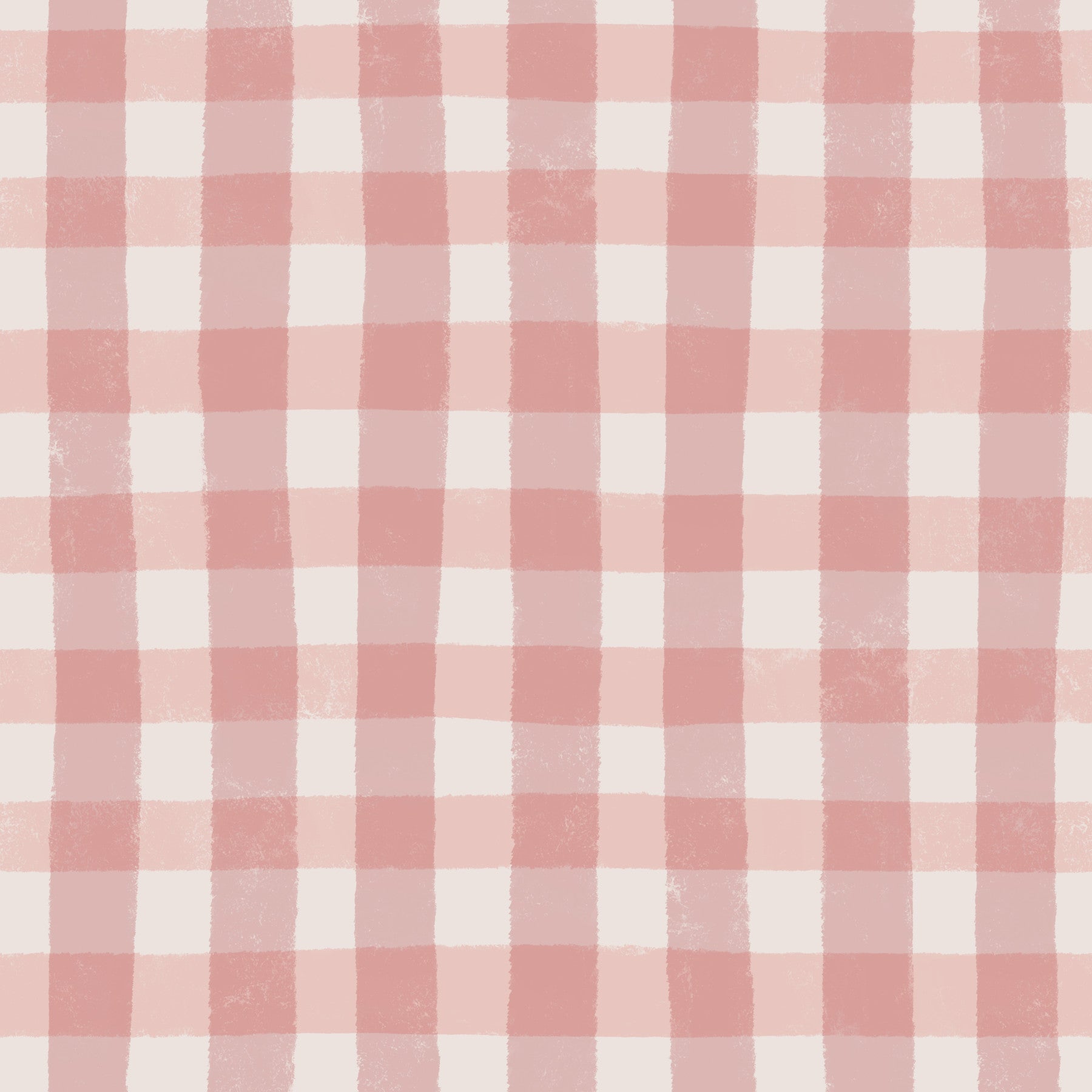 Pastel pink gingham wallpaper offering a soft, airy checkered design.