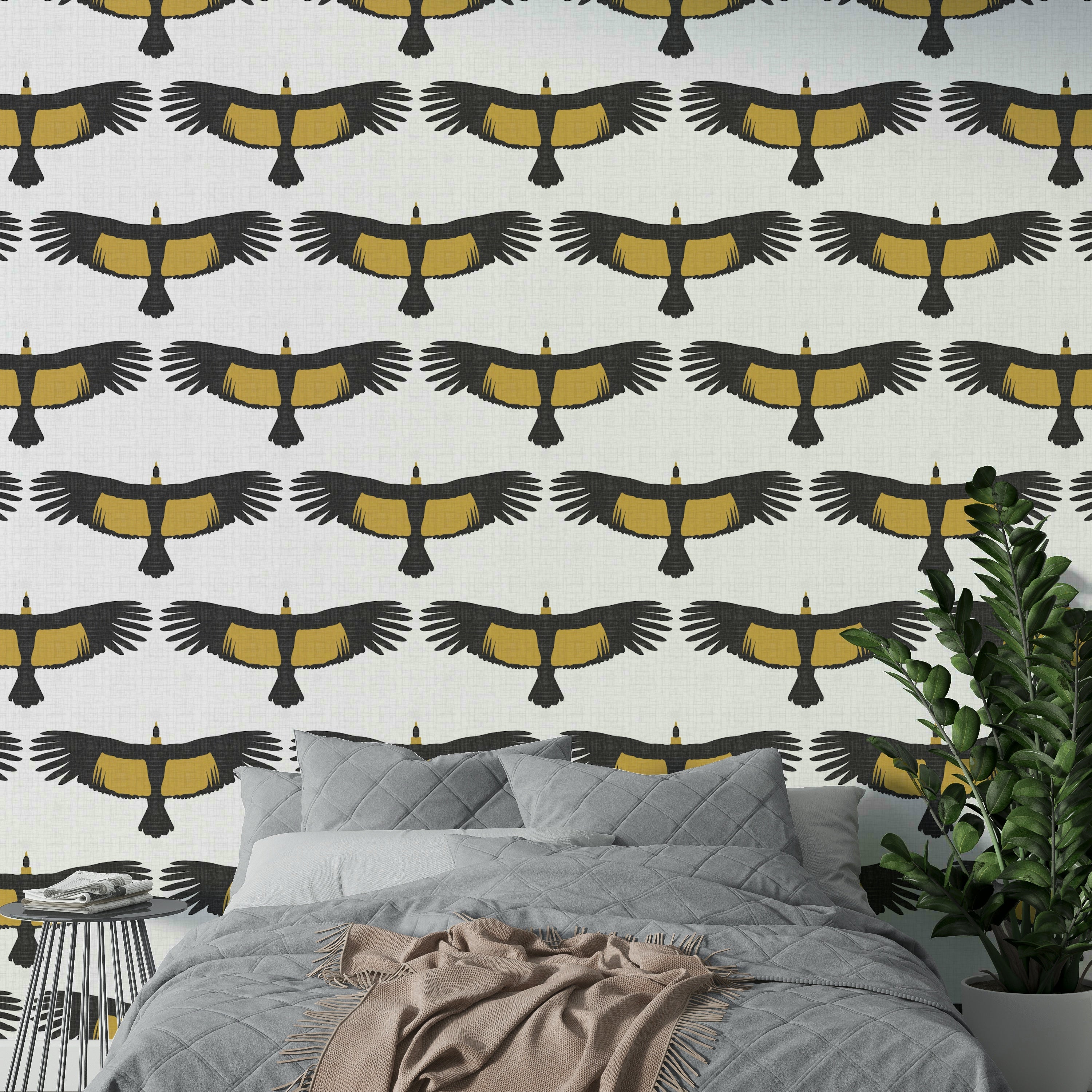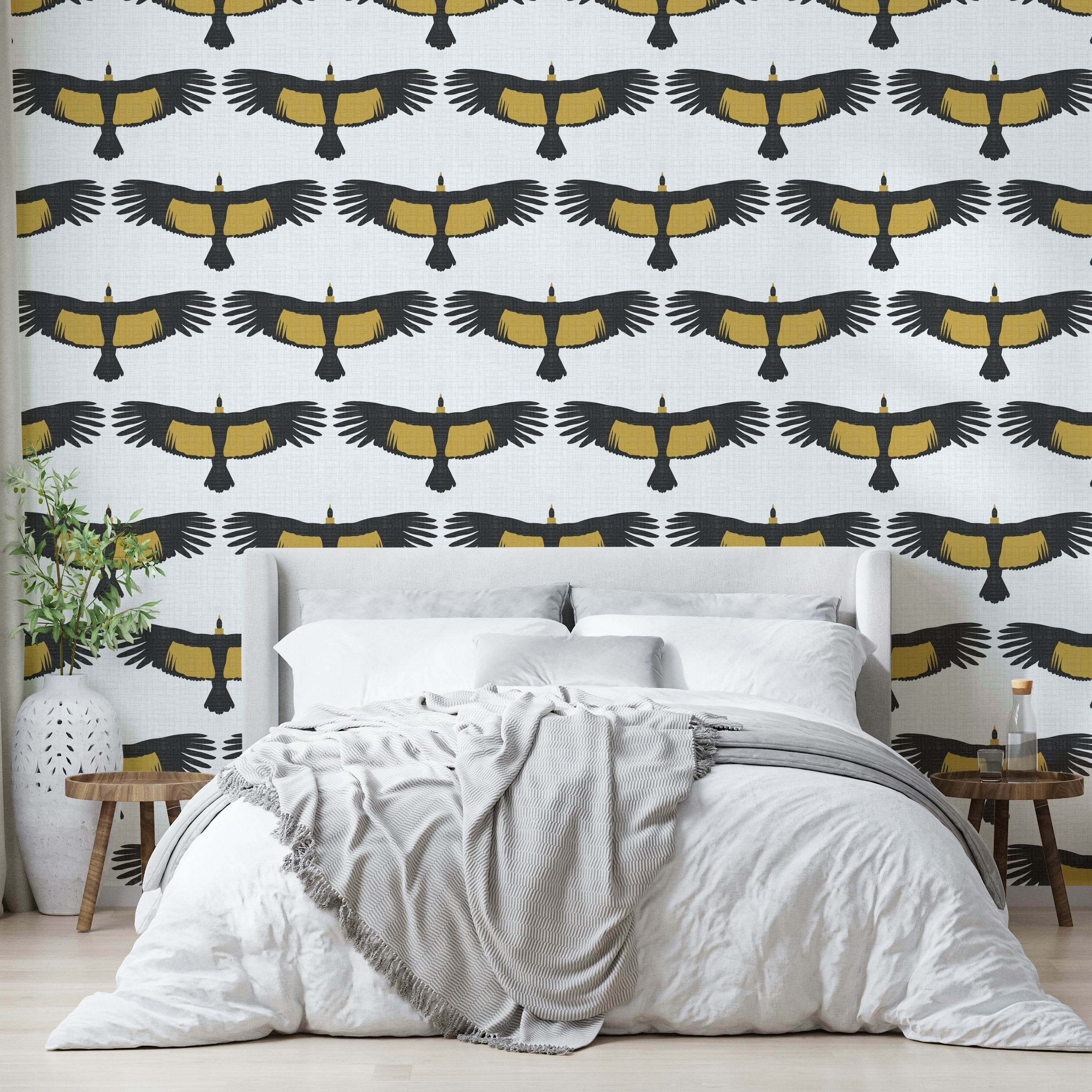 Subtle rustic white wallpaper with condor silhouettes