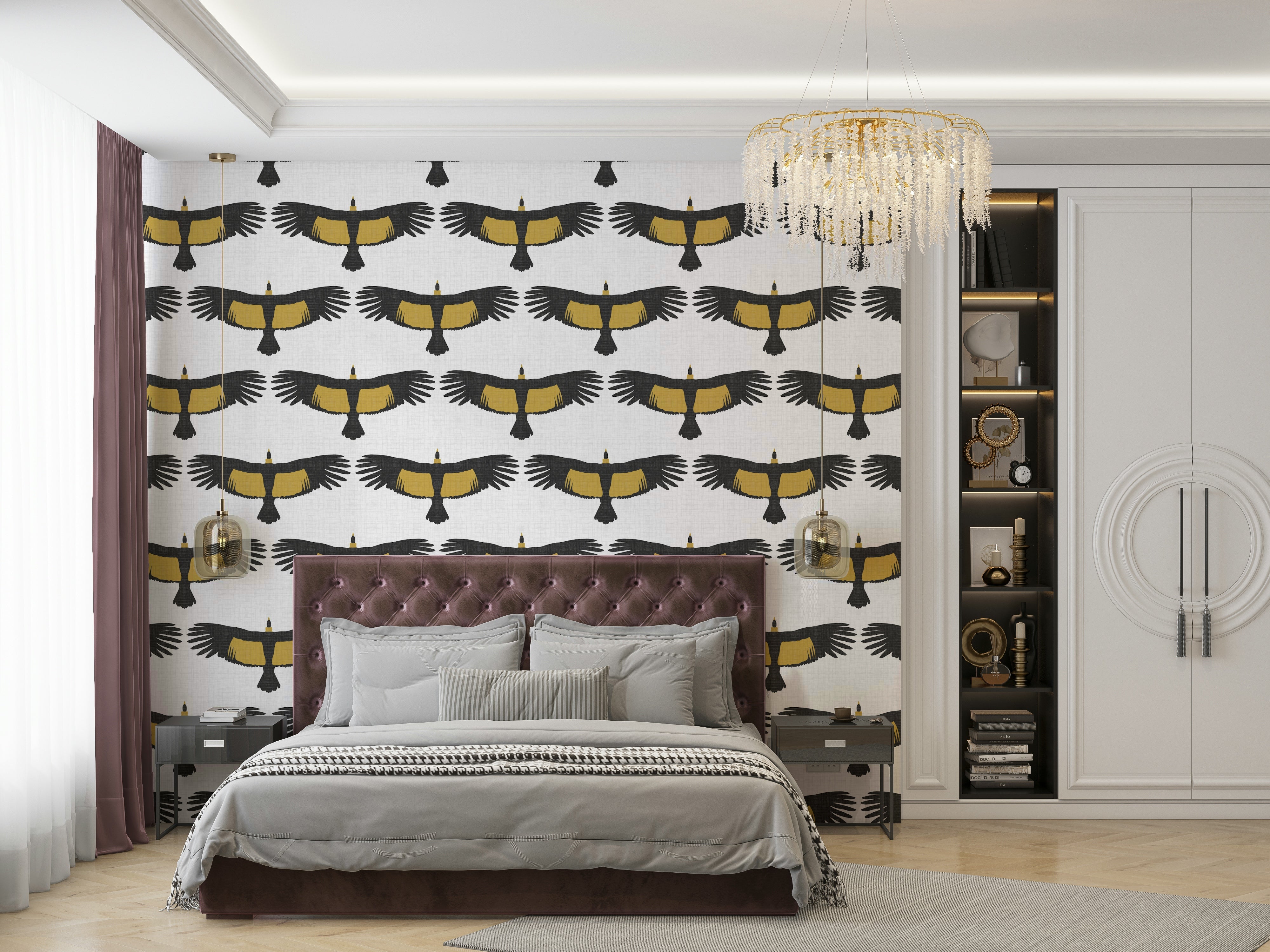 Rustic-style wallpaper with large soaring condors