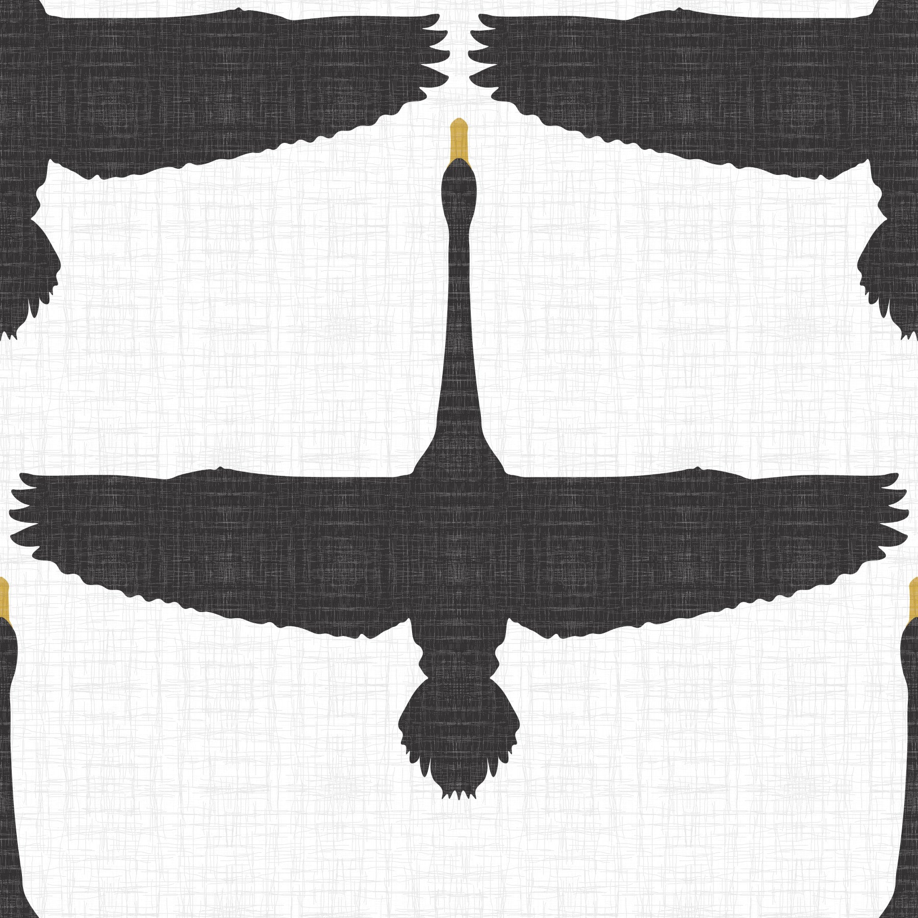 Rustic Swan Flock Gray Wallpaper with flying swans