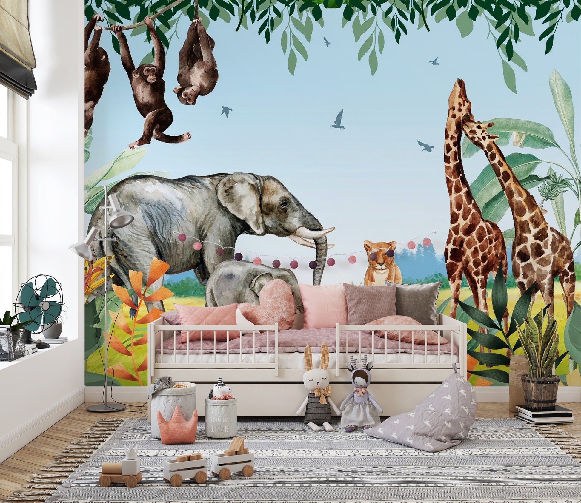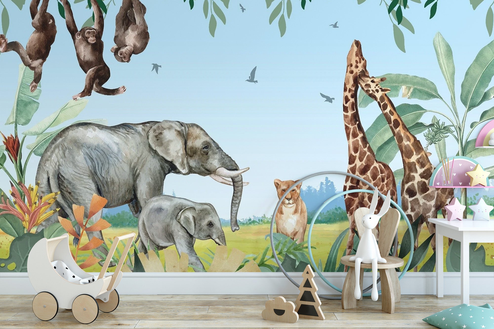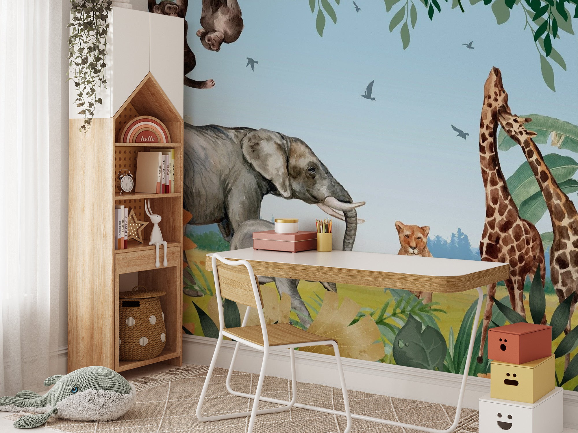 With our African safari wallpaper murals, home improvement takes on a new meaning. These feature wall decorations are more than just a backdrop they're a focal point that infuses life into interior design. Ideal for anyone looking to create a playful and inspiring atmosphere, our murals are crafted for vibrant durability. Not only do they animate the space, but they also offer a visually stunning experience that sparks joy and creativity in kids' daily lives.