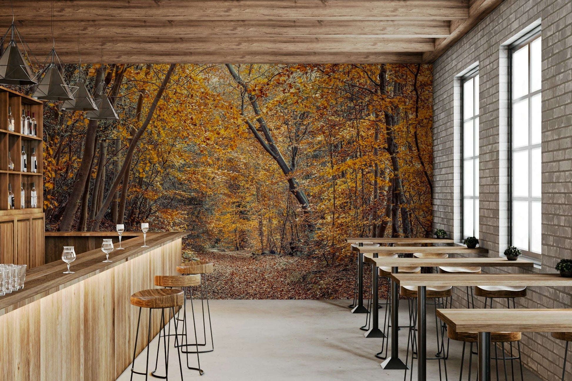 Scenic Woodland Path in Fall Wall Mural