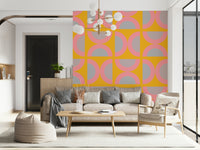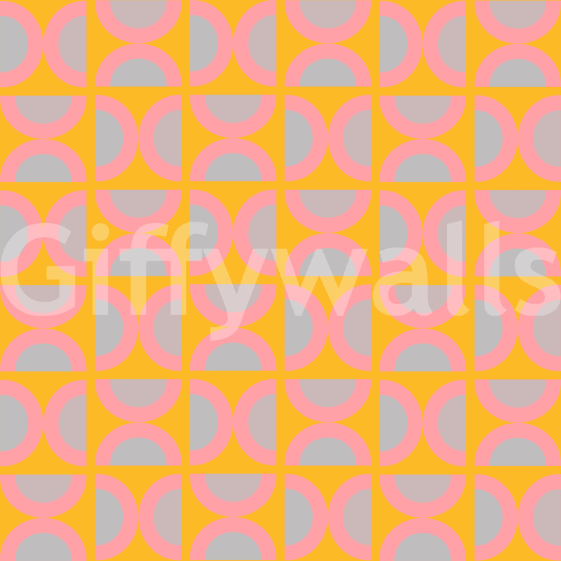 Elevate your home with this eye-catching geometric design! This stylish wallpaper for walls employs a repeating semicircle motif in a pleasing color scheme. The vibrant yellow background supports the light pink curves and gray inner shapes, creating a vibrant contrast. Ideal for adding a touch of fun to living spaces or kids' rooms, the pattern introduces a playful and modern feel. It works wonders in hallways or bedrooms, lending an artsy touch that blends effortlessly with varied décor styles and making a bold statement on any accent wall.