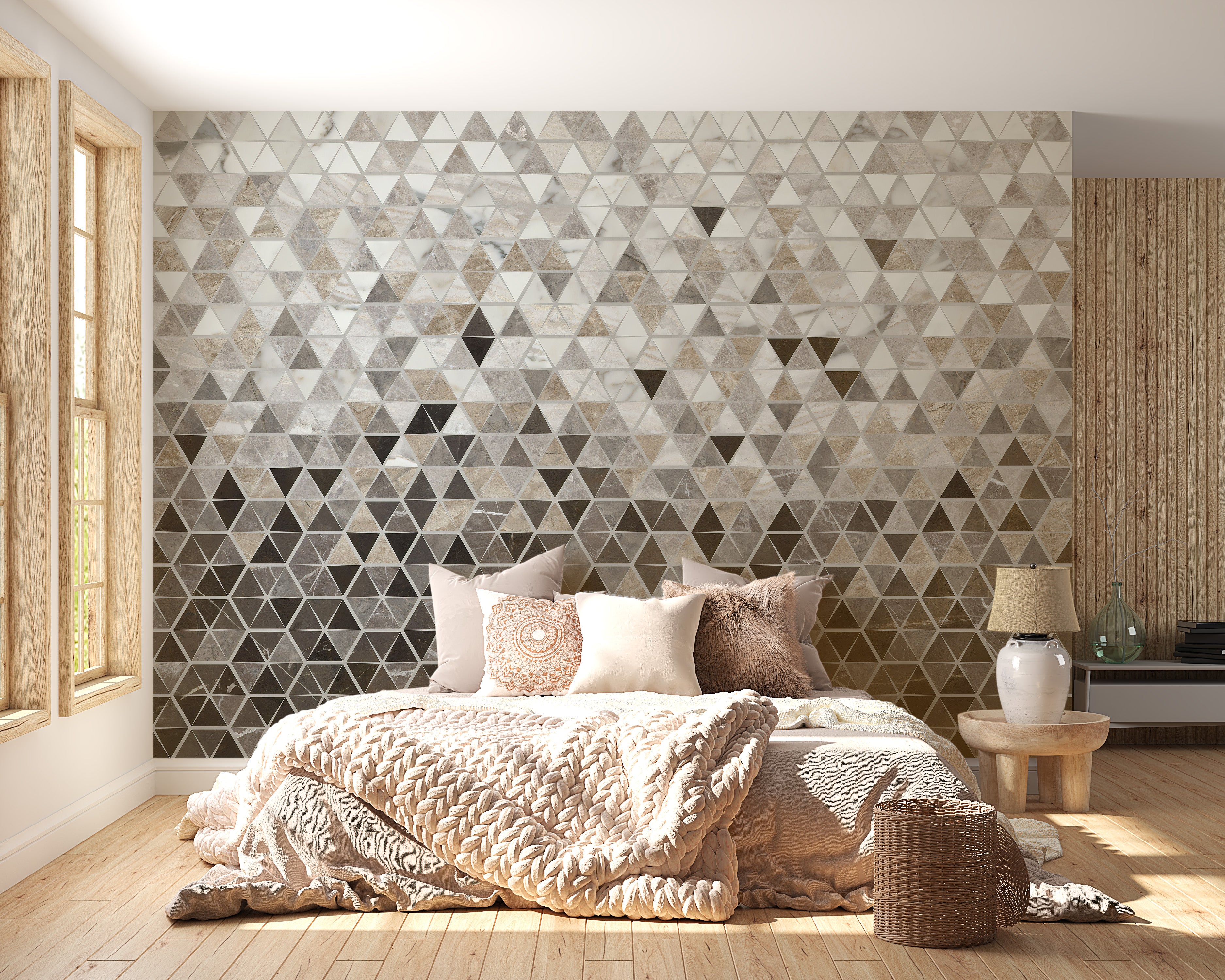 Infuse your interior with the sophistication of our sepia triangle tiles wallpaper mural. Crafted by Giffywalls, this triangle tiles wallpaper mural presents an abstract mosaic of triangles in rich sepia, brown, and gold hues, adding a touch of elegance and contemporary artistry to any room. Ideal for creating a striking backdrop in your living or work space, this sepia color wallpaper mural exudes warmth and modern flair. The high-quality print is designed for easy installation, ensuring a seamless and durable finish that captivates and charms. Make a statement with this exquisite geometric design that redefines your walls with its timeless appeal.