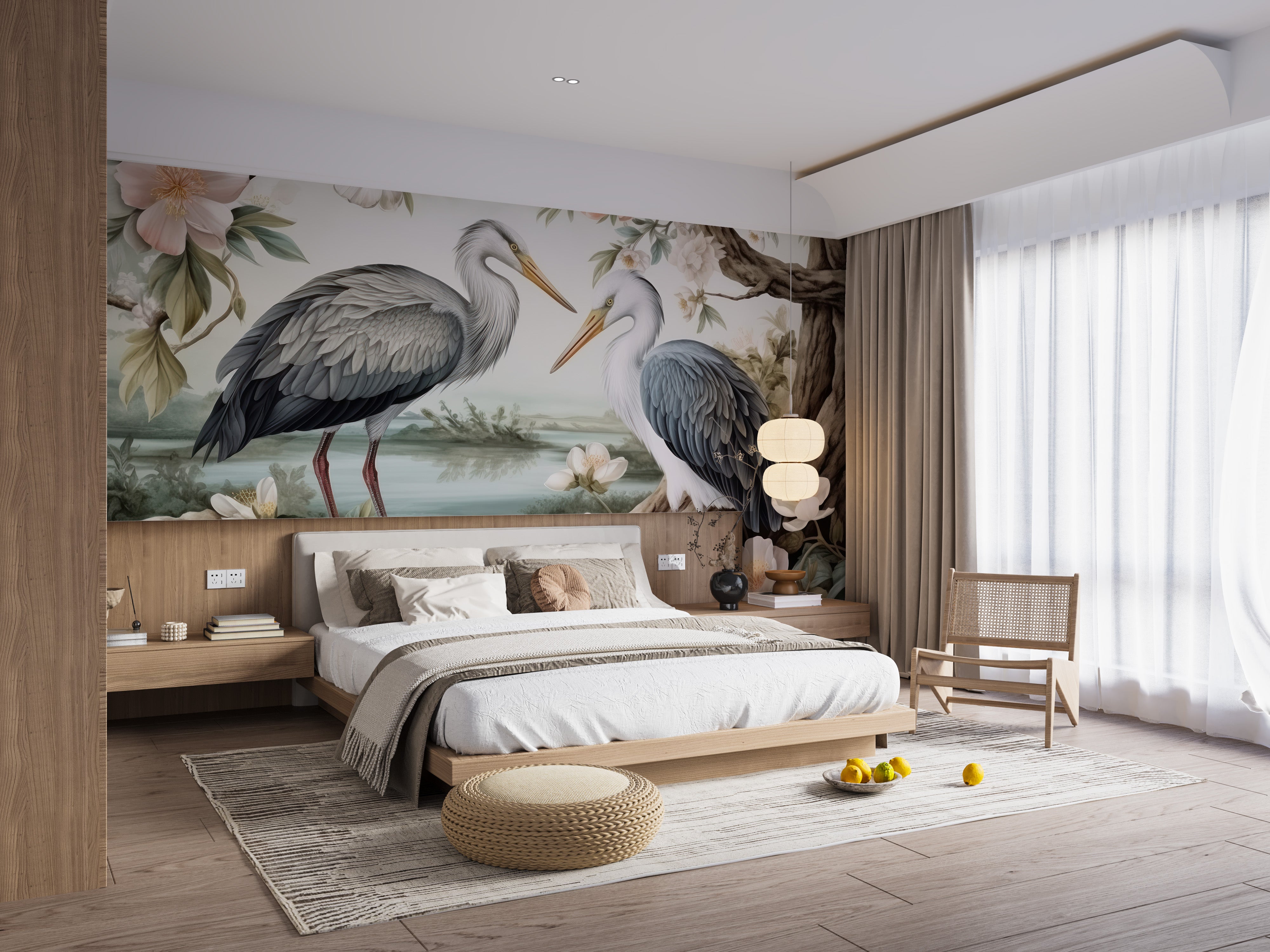 Discover elegance in simplicity with the serene heron lake mural. Picture graceful herons poised by a still lake, their reflections a dance of calm on the water's surface. This mural captures the essence of lakeside serenity, inviting a sense of harmony into any room. Whether it's a moment of reflection or a backdrop for daily life, this lakes wallpaper becomes a focal point that speaks of nature's quiet beauty. Bring the outdoors in and let the stillness of the lake scene envelop your surroundings.