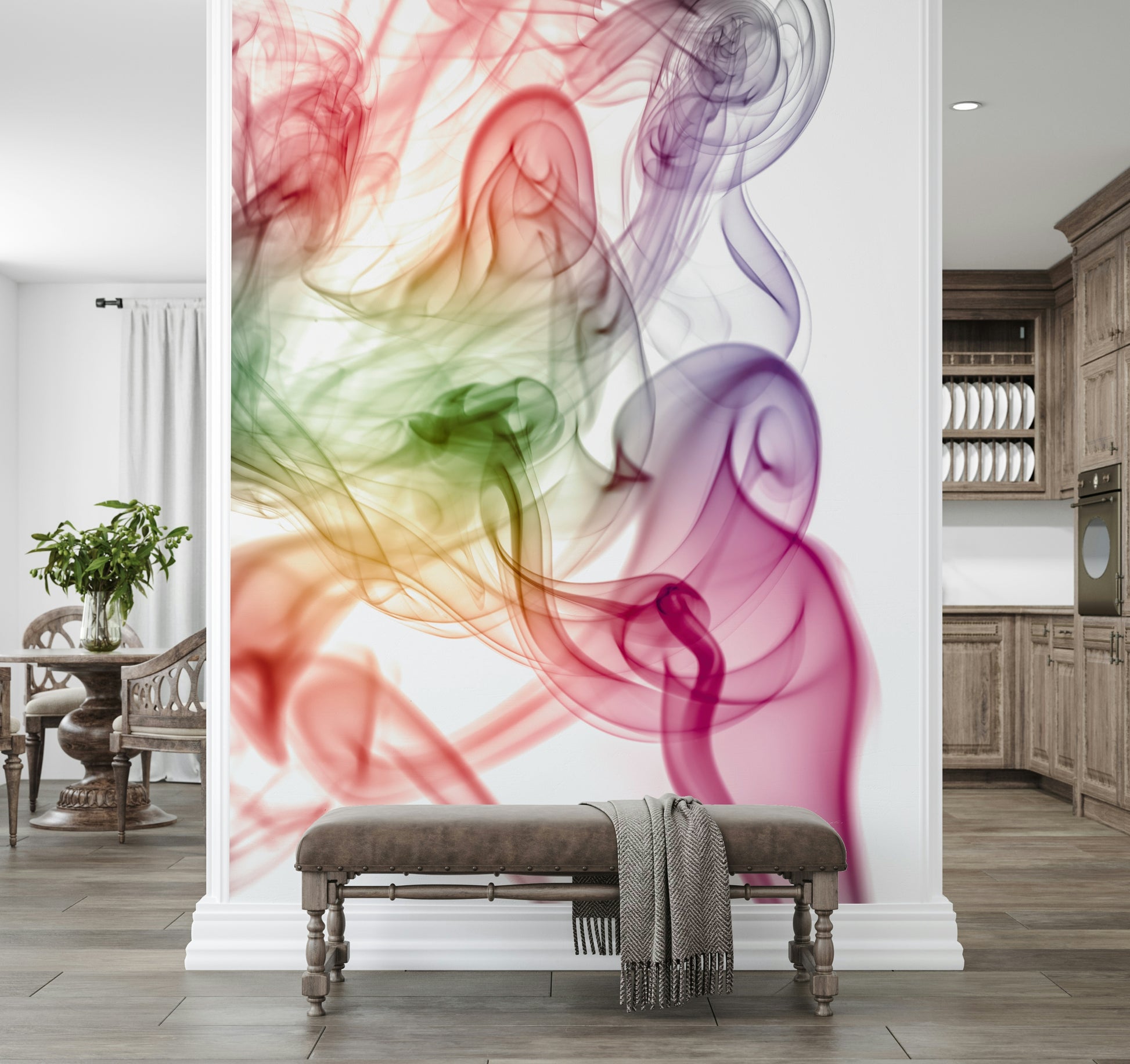 Colorful Smoke Art on white background. Embrace the ethereal beauty of Smoke Art, a stunning addition to any space seeking a touch of modern artistry. This evocative piece captures the fleeting elegance of smoke, transforming ephemeral wisps into a vibrant and captivating display. Swirls of color dance across the expanse, blending seamlessly from fiery reds and oranges to cool greens and tranquil blues, creating a harmonious symphony of light and shadow. The artwork evokes a sense of movement, fluidity, and the ever-changing nature of beauty itself. Let the mesmerizing patterns of Smoke Art infuse your walls with a sense of mystery and wonder, transforming any room into a gallery of abstract expression. This captivating creation promises to spark conversation and ignite the imagination, adding a sophisticated and contemporary flair to your home.