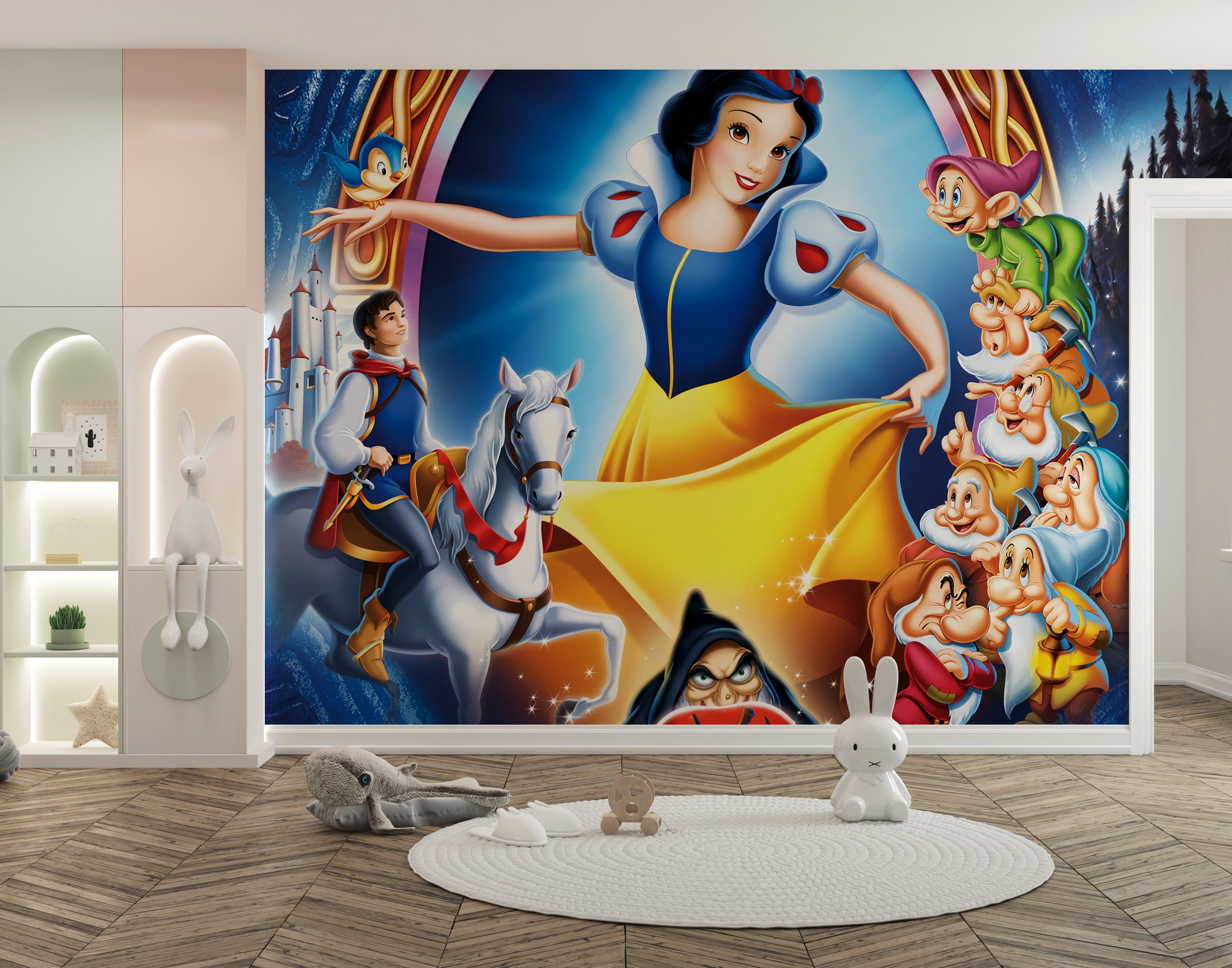 Dive into a world of magic and wonder with our Snow White adventure wallpaper mural. Designed especially for the little dreamers, this enchanting princess wallpaper brings the beloved fairy tale to life right on your walls. The vibrant and detailed illustration captures Snow White's timeless journey, making it a perfect choice for a kids' room wallpaper. Let your child's imagination soar as this captivating scene surrounds them. Whether they dream of being a prince or princess in a faraway kingdom or love the charm of classic tales, this mural will be a cherished addition to their space. Transform their room into a fairy tale realm where every day is an adventure!