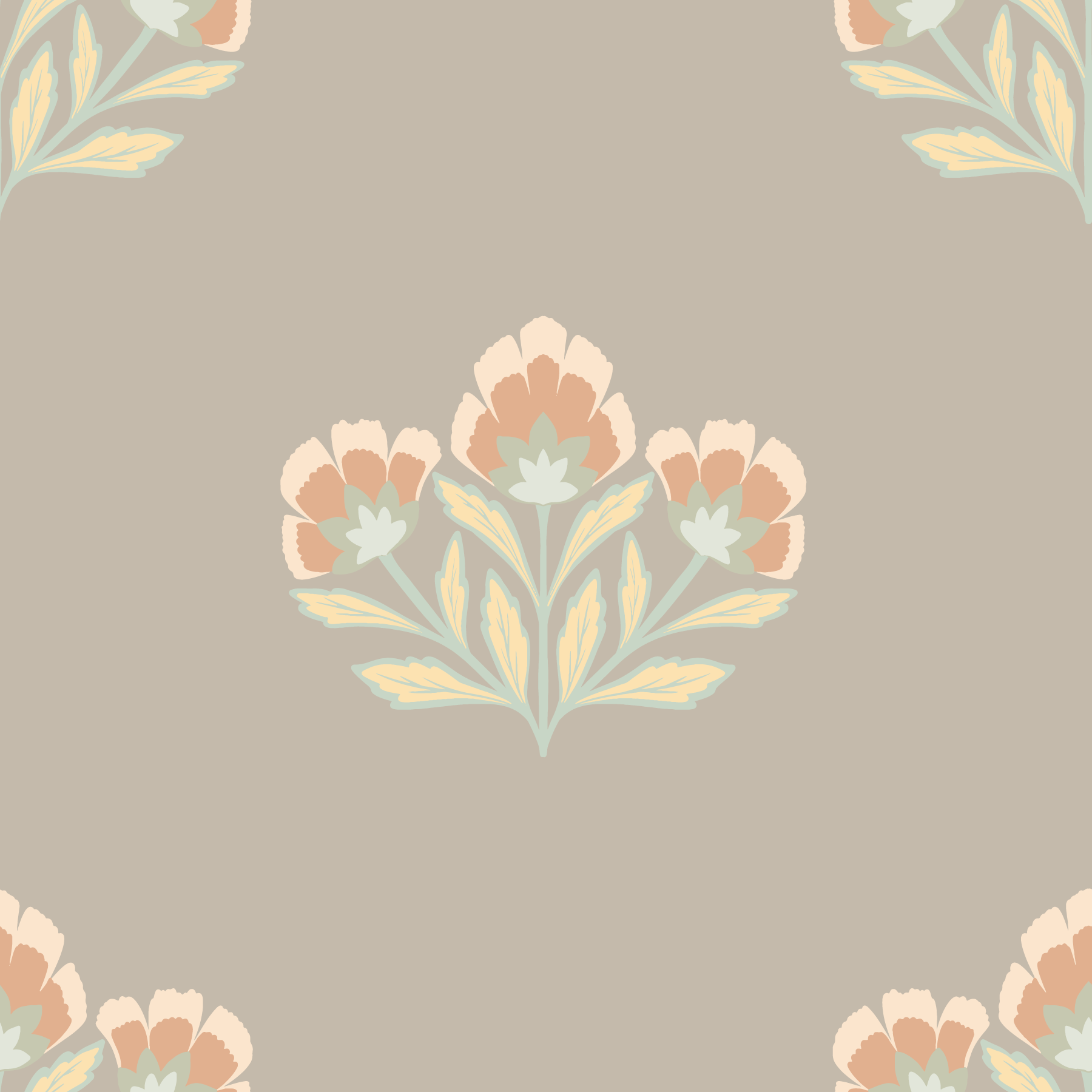 The Serene Flora mural introduces timeless elegance with its beautifully stylized botanical motif. This captivating mural wallpaper showcases delicate flower clusters in soft hues of peach, pale sage, and creamy yellow, set against a chic, dusty taupe background. Inspired by classic global textiles, the repeating pattern offers a feeling of calm symmetry and sophistication. Ideal for creating a serene and cultured atmosphere in bedrooms, dining areas, or studies, this high-quality wall mural works beautifully in both traditional and contemporary settings. Choose this charming wallpaper for walls for an infusion of gentle, artistic grace.