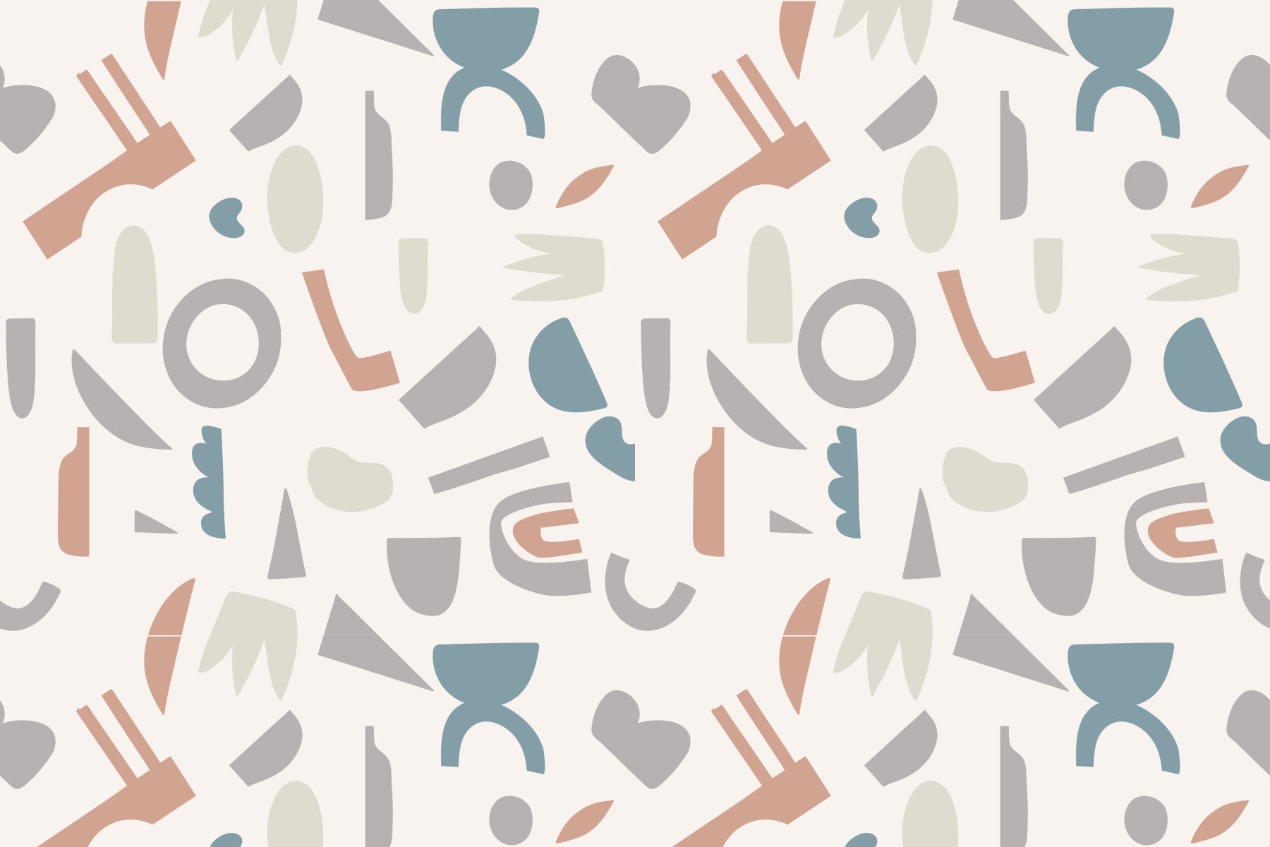 Elevate your space with this inviting abstract wallpaper. The design features a pattern of soft geometric shapes in a muted color palette. Gentle blues, warm browns, and soft grays create a calming atmosphere. This versatile wallpaper for walls suits bedrooms, living rooms, or nurseries. The simple shapes and soothing hues bring a touch of modern elegance and playful charm to any interior.