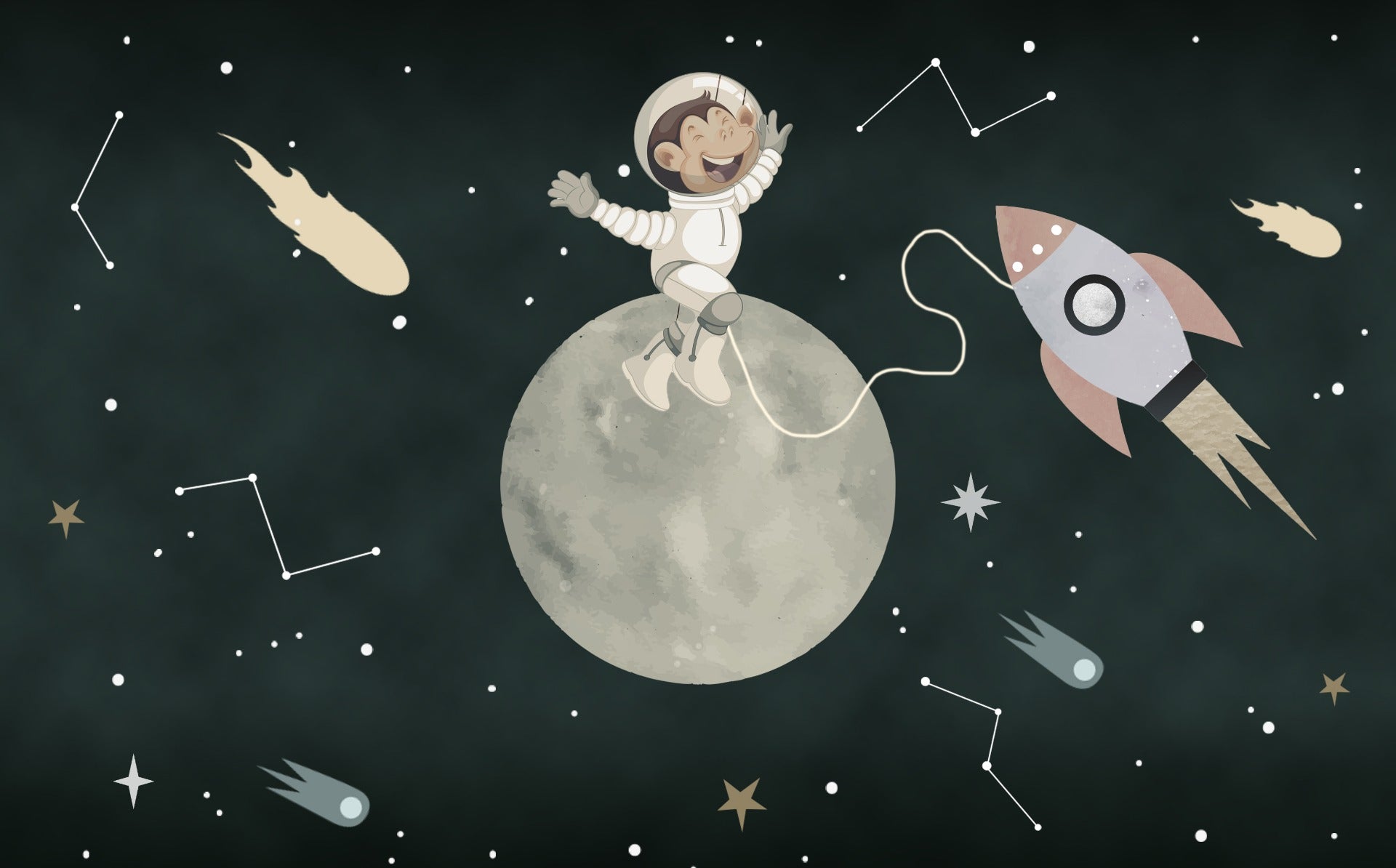 Kids space wallpaper with moon and rocket