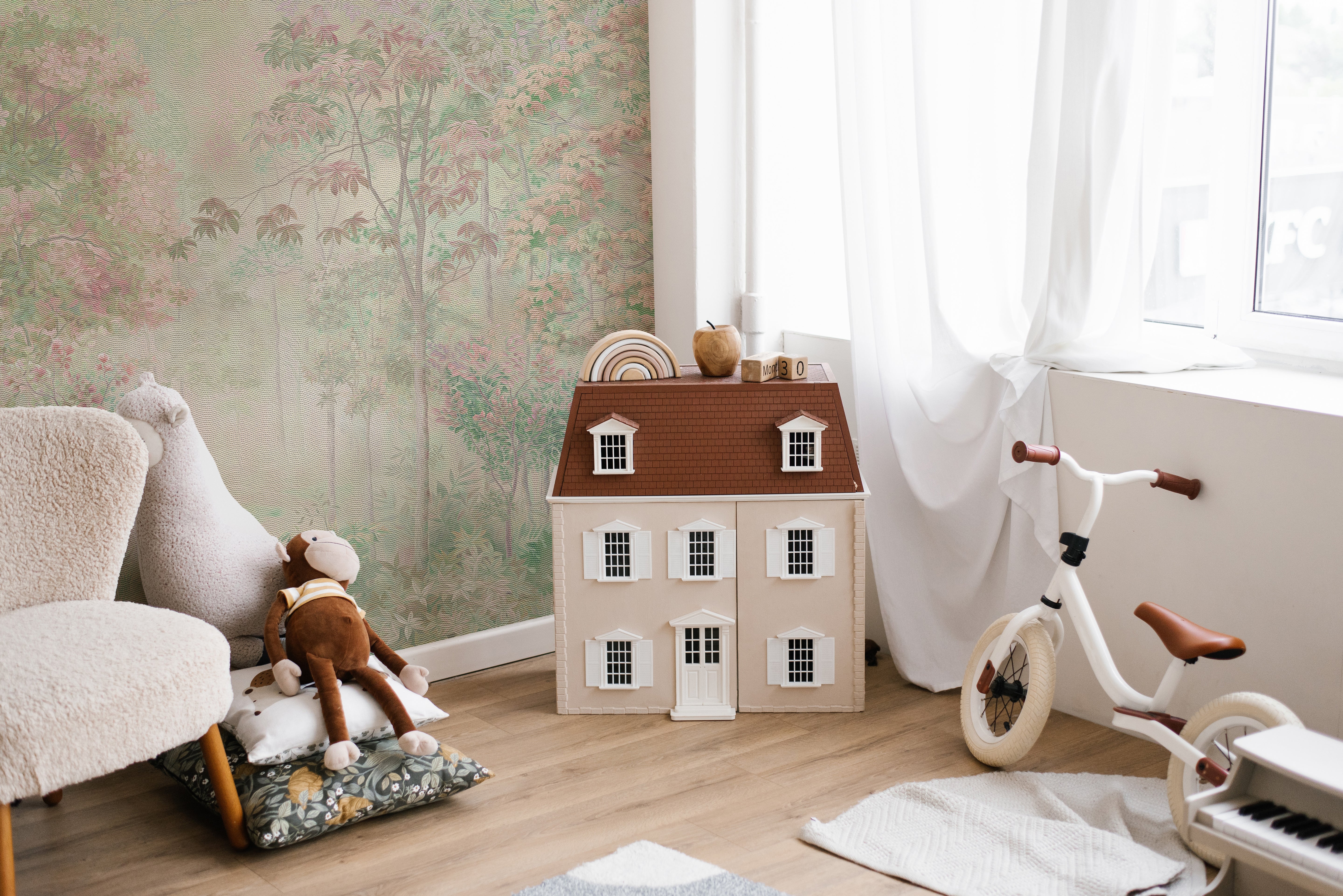 Soft spring serenity mural with delicate flower designs