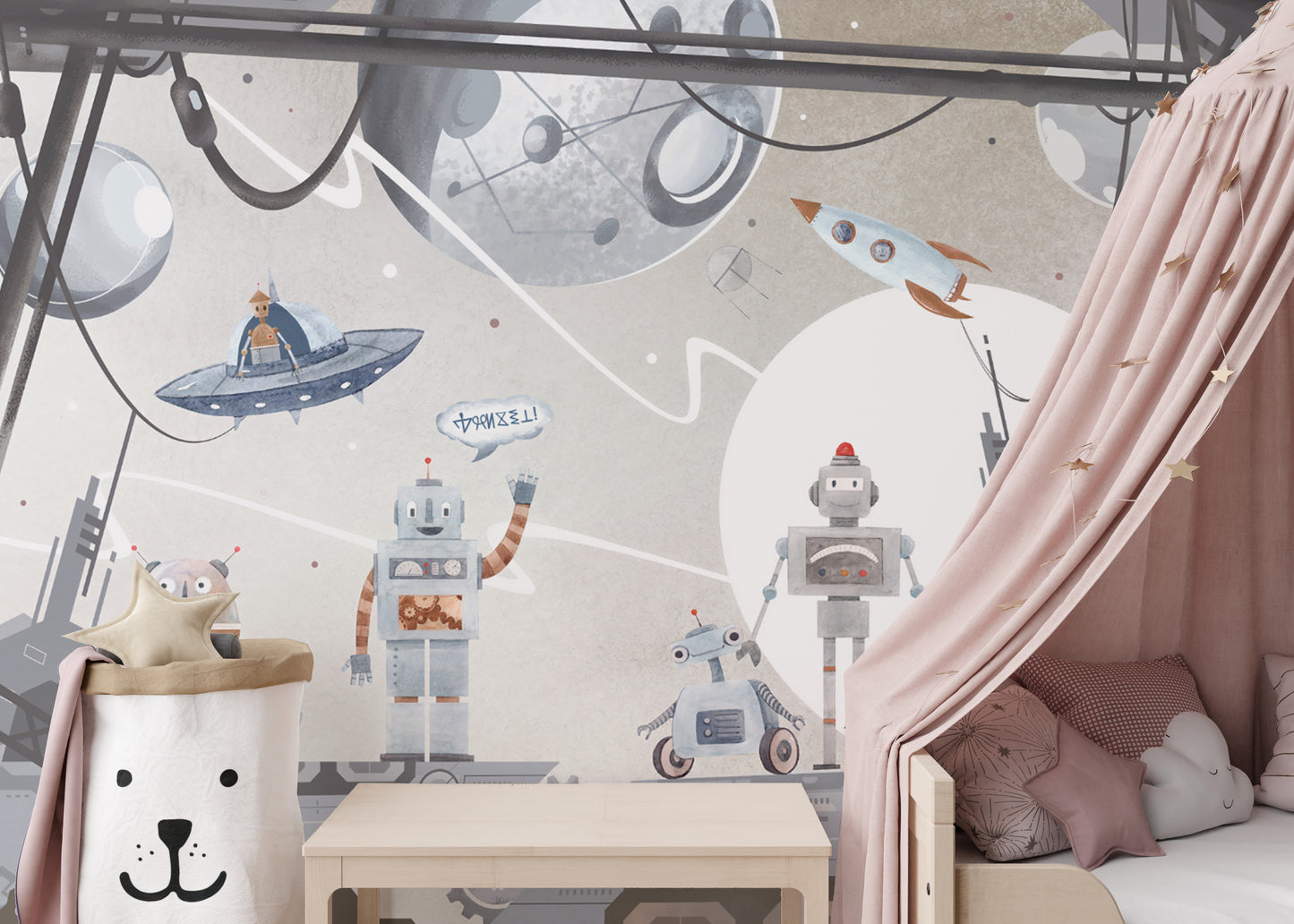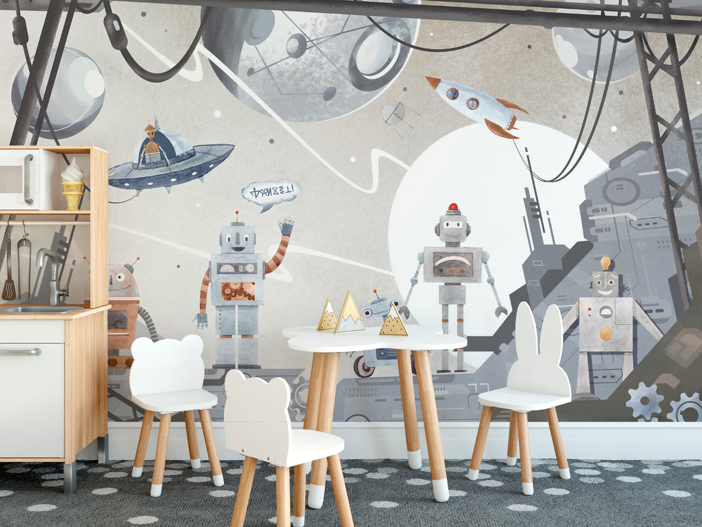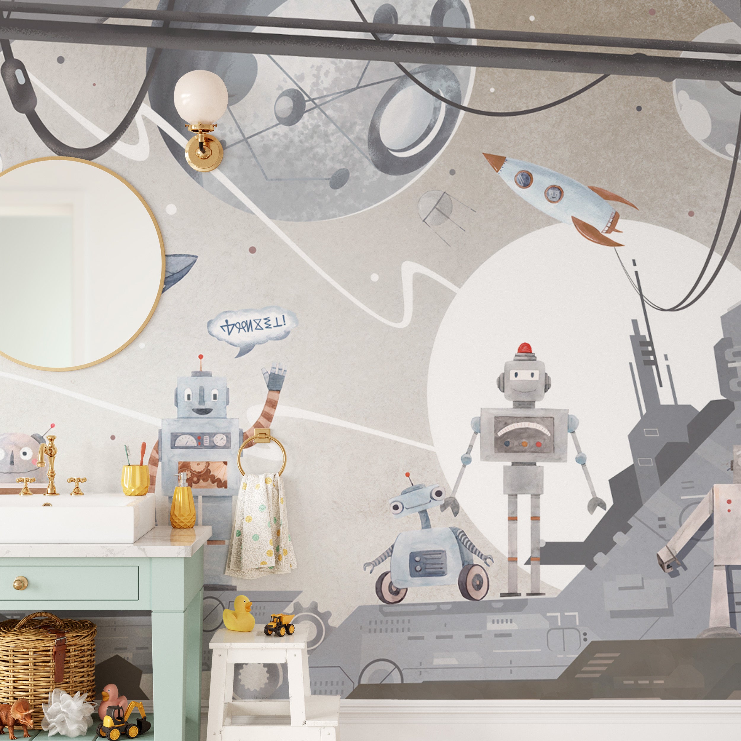 Unleash a universe of creativity and imagination in your child's room with our stellar bot expedition mural wallpaper. Crafted with precision and a sprinkle of intergalactic fun, this stellar bot expedition for kids room wallpaper is an awe-inspiring blend of innovative design and a dash of playful vibes, making it a perfect choice for a kid's room.