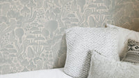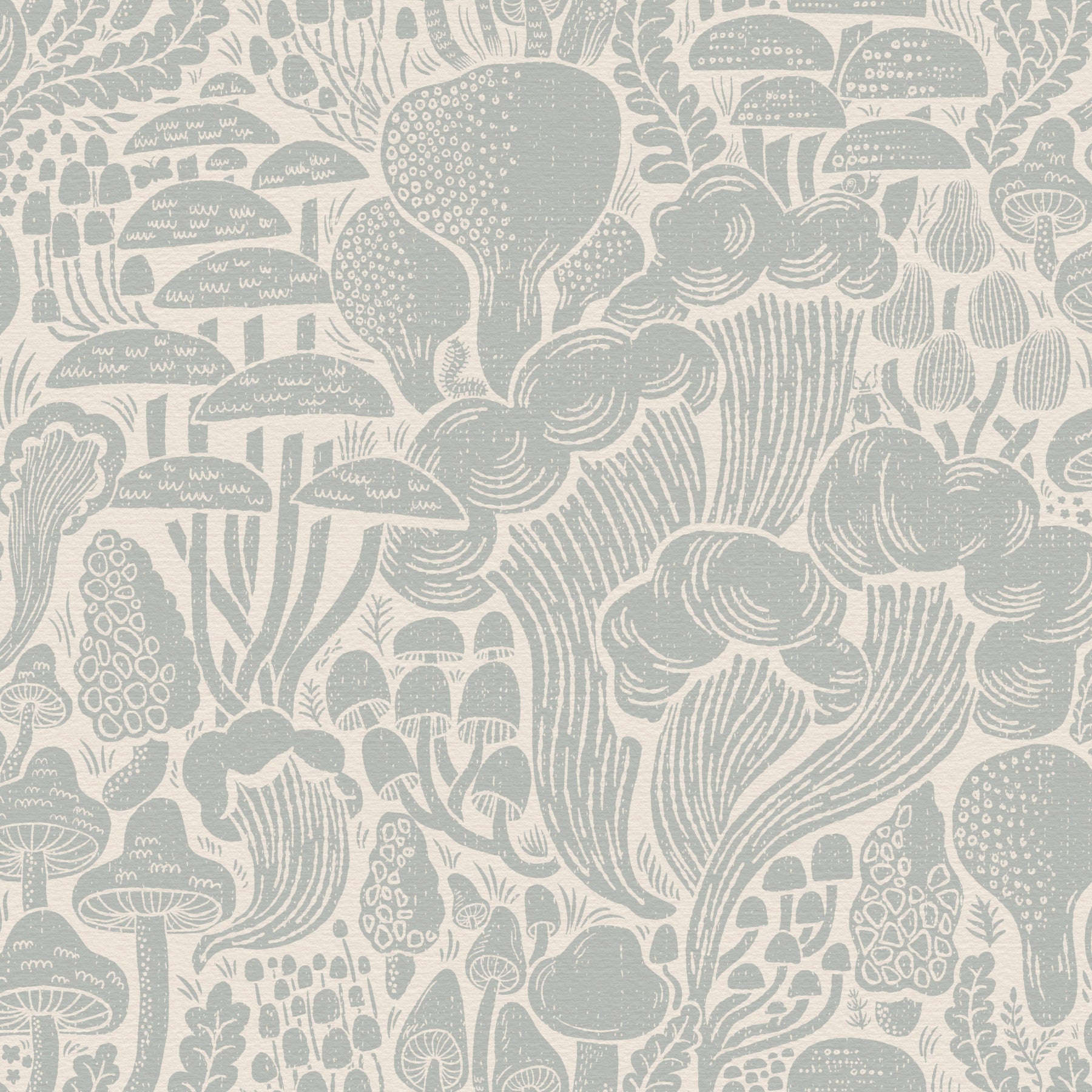 Immerse yourself in the enchanting 'Sten Fungi Forest Silhouettes' wallpaper. This design features a captivating array of stylized mushroom silhouettes, rendered in soft, muted grey tones against a creamy off-white background. The textured, linocut-inspired aesthetic evokes a sense of rustic charm and whimsical tranquility. Various mushroom species, from delicate toadstools to larger, imposing fungi, are intricately detailed, creating a dense, yet harmonious forest scene. The overall effect is a serene and captivating wallpaper, perfect for adding a touch of nature-inspired artistry to any digital device.