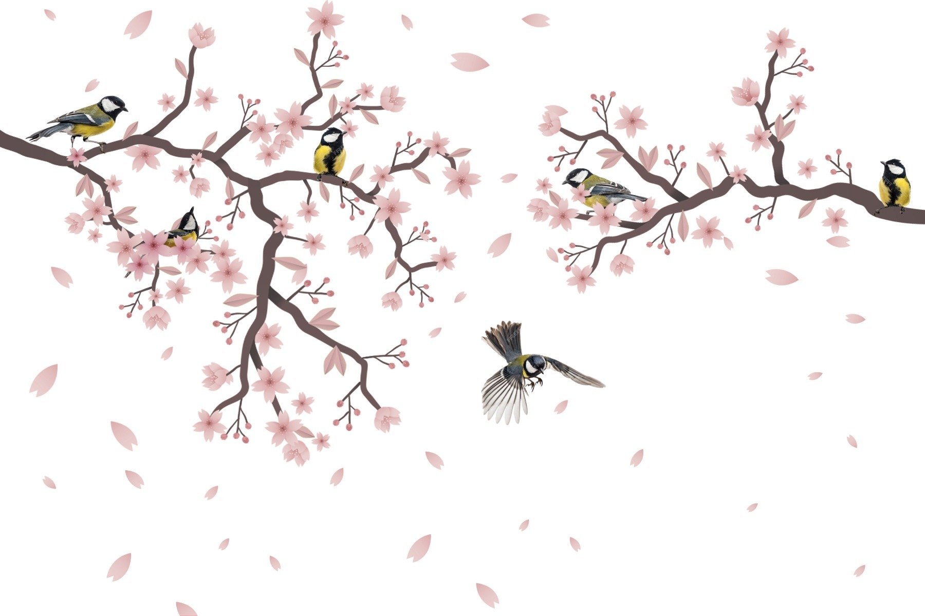 Serene Sunset Titmouse Cherry Blossom Mural design