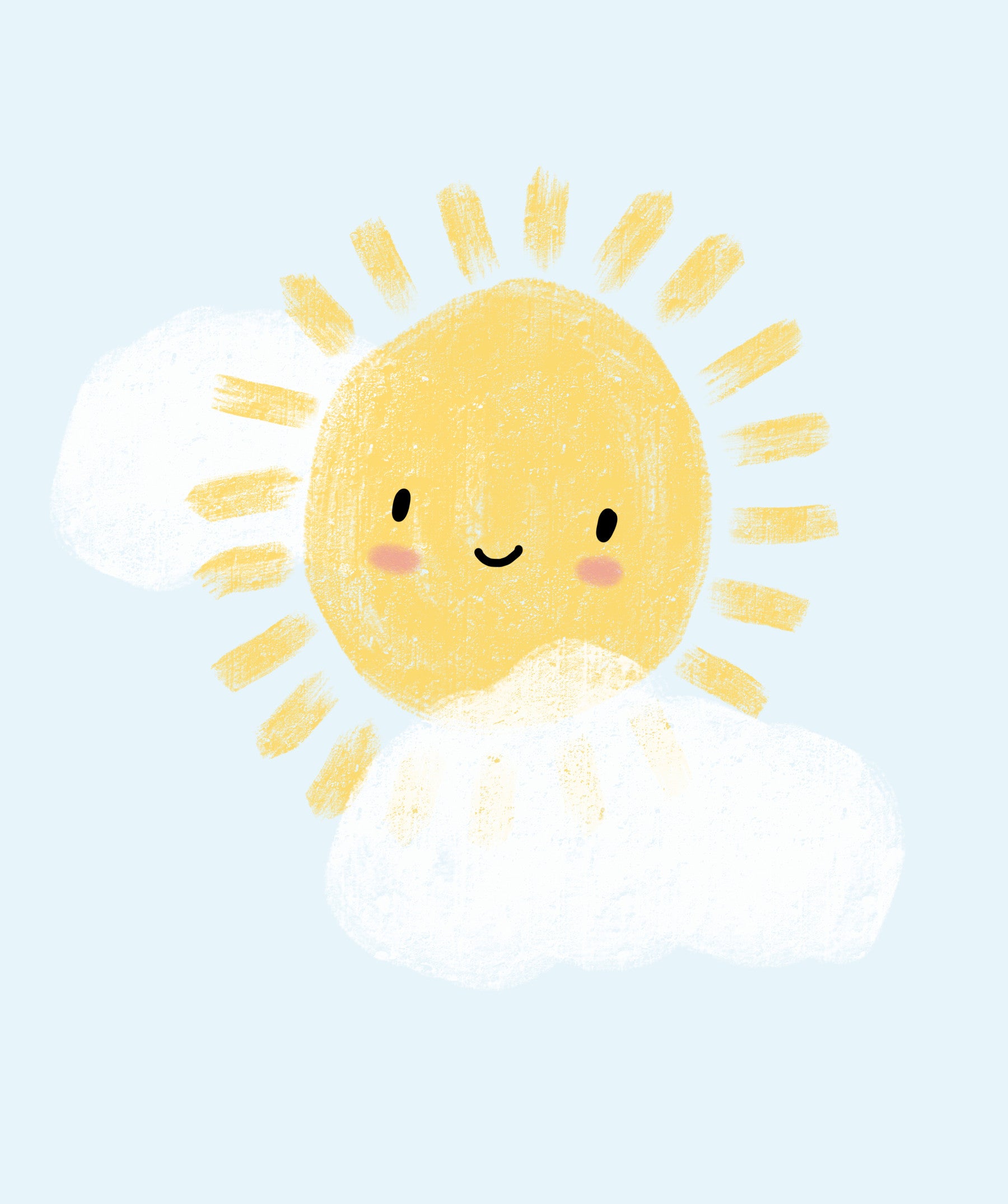 Embrace the cheerful warmth of 'Sunshine,' a delightful wallpaper featuring a hand-drawn sun peeking playfully from behind fluffy clouds. The pastel yellow sun, with its charming smile and rosy cheeks, exudes a sense of joy and tranquility. Its textured, crayon-like aesthetic adds a touch of whimsy, perfect for creating a bright and happy atmosphere on your digital devices. This design is ideal for those seeking a simple yet captivating visual that evokes feelings of optimism and childlike wonder. The soft blue backdrop complements the sunny yellow, creating a calming and cheerful contrast.