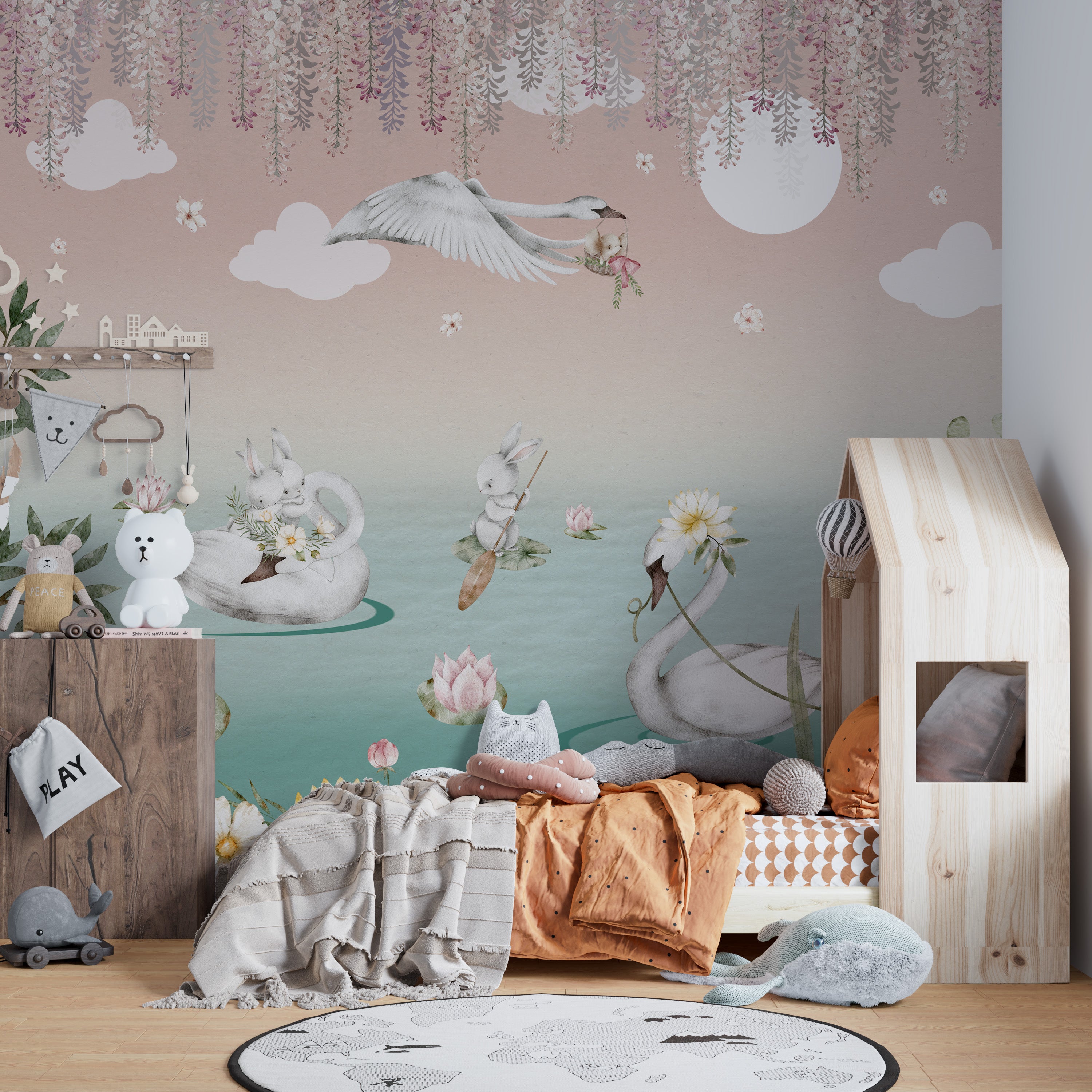 Kids room wallpaper with Swan Lake design