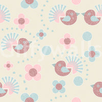 A soft and charming Kids Wallpaper featuring a repeating pattern of sweet birdies and floral blooms in pasteltones.