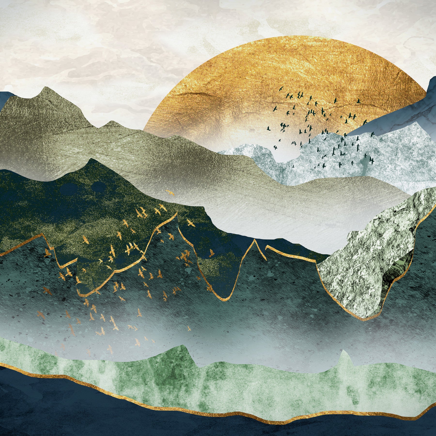 Green Golden Mountains Sunset Wallpaper – Sunset Wall Decor